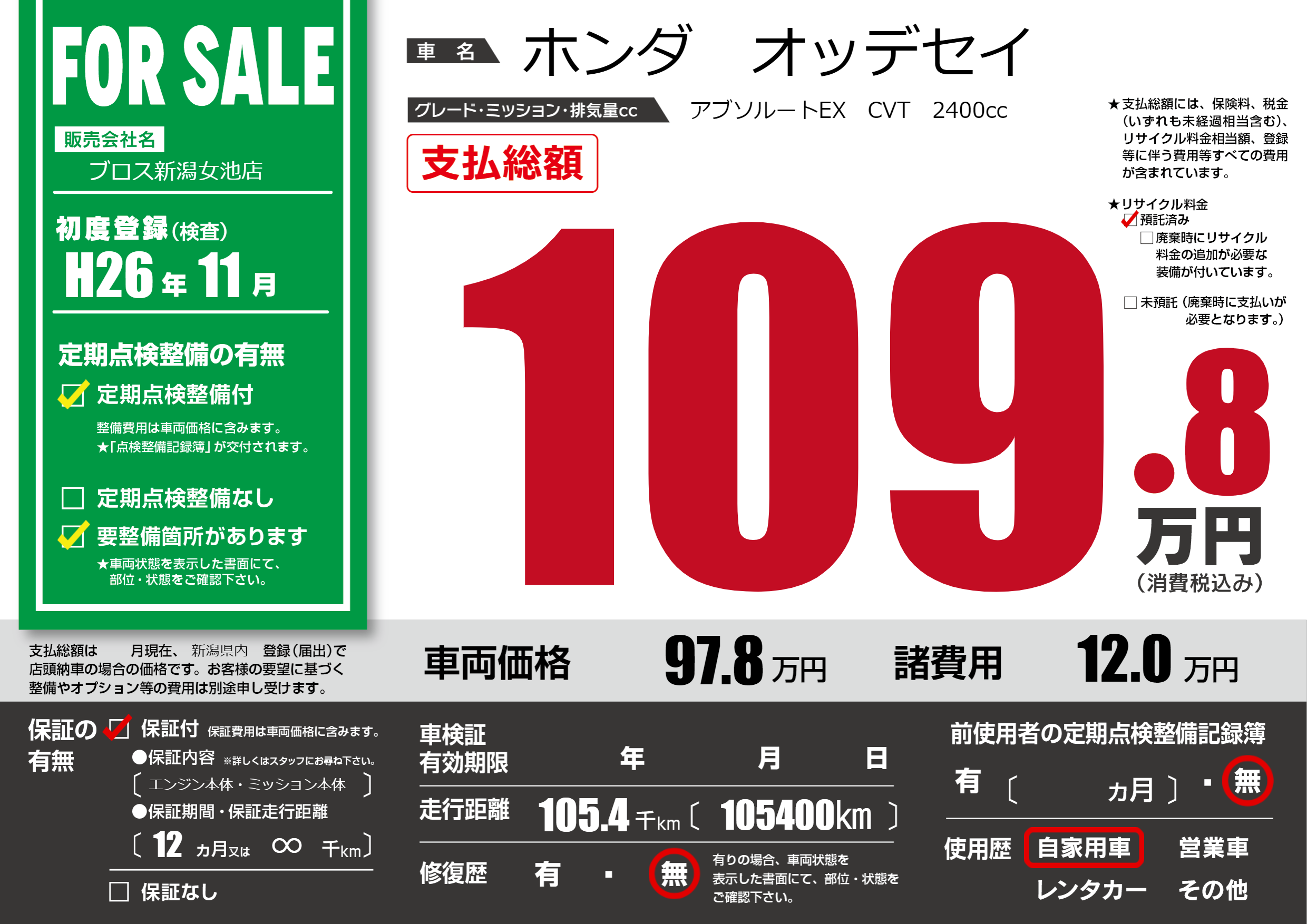 | 定期点検整備 | 定期点検整備あり 要整備箇所あり | ||