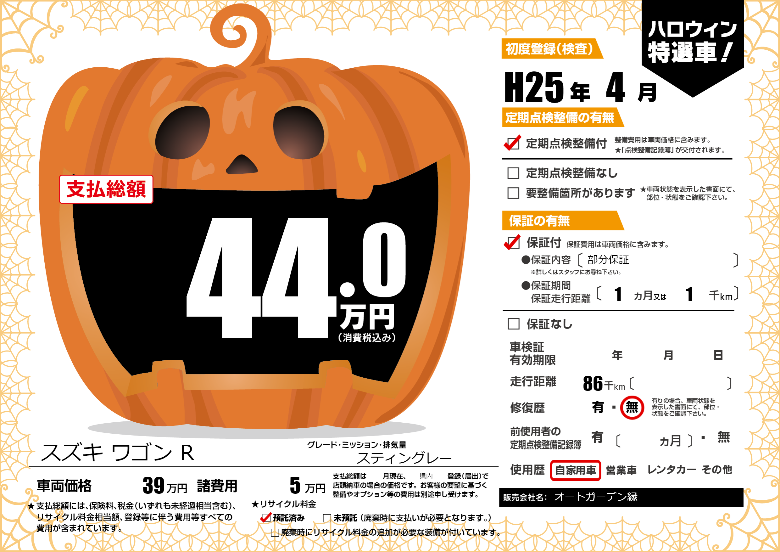 | 車検制限 | - 年 - 月 - 日 | ||