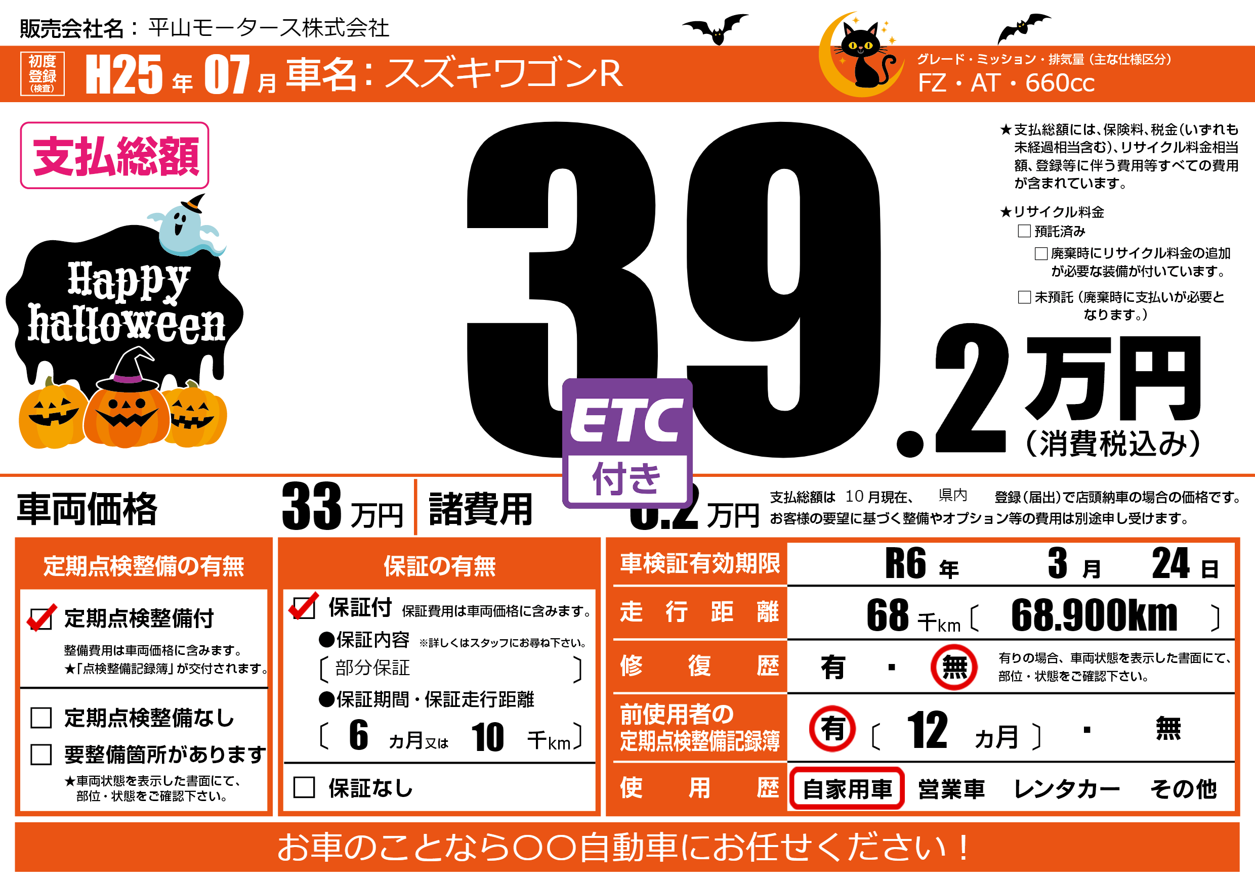 | 走行キロ | 6.8万km | 初年度登録 | H25年07月 |