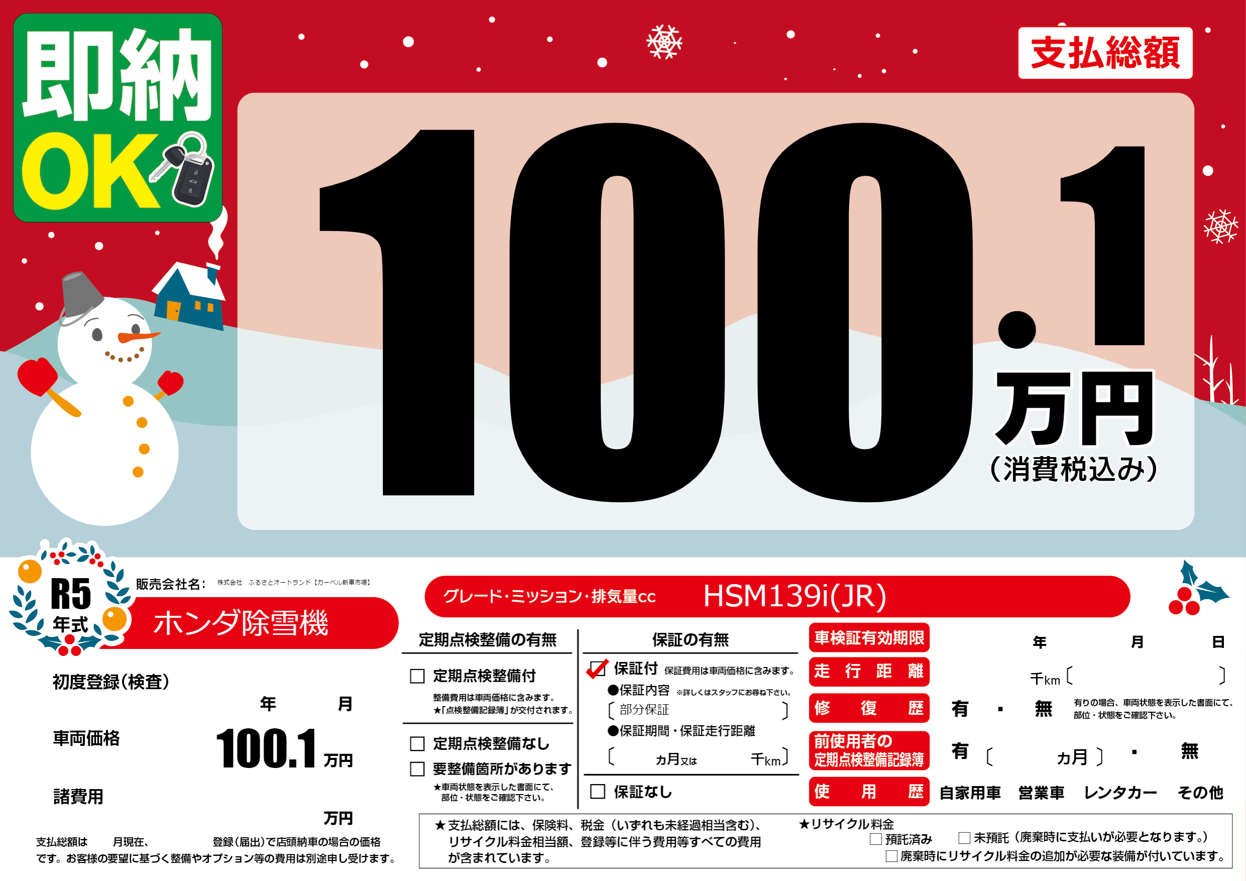 | 車名 | ホンダ除雪機 | グレード ミッション 排気量 |