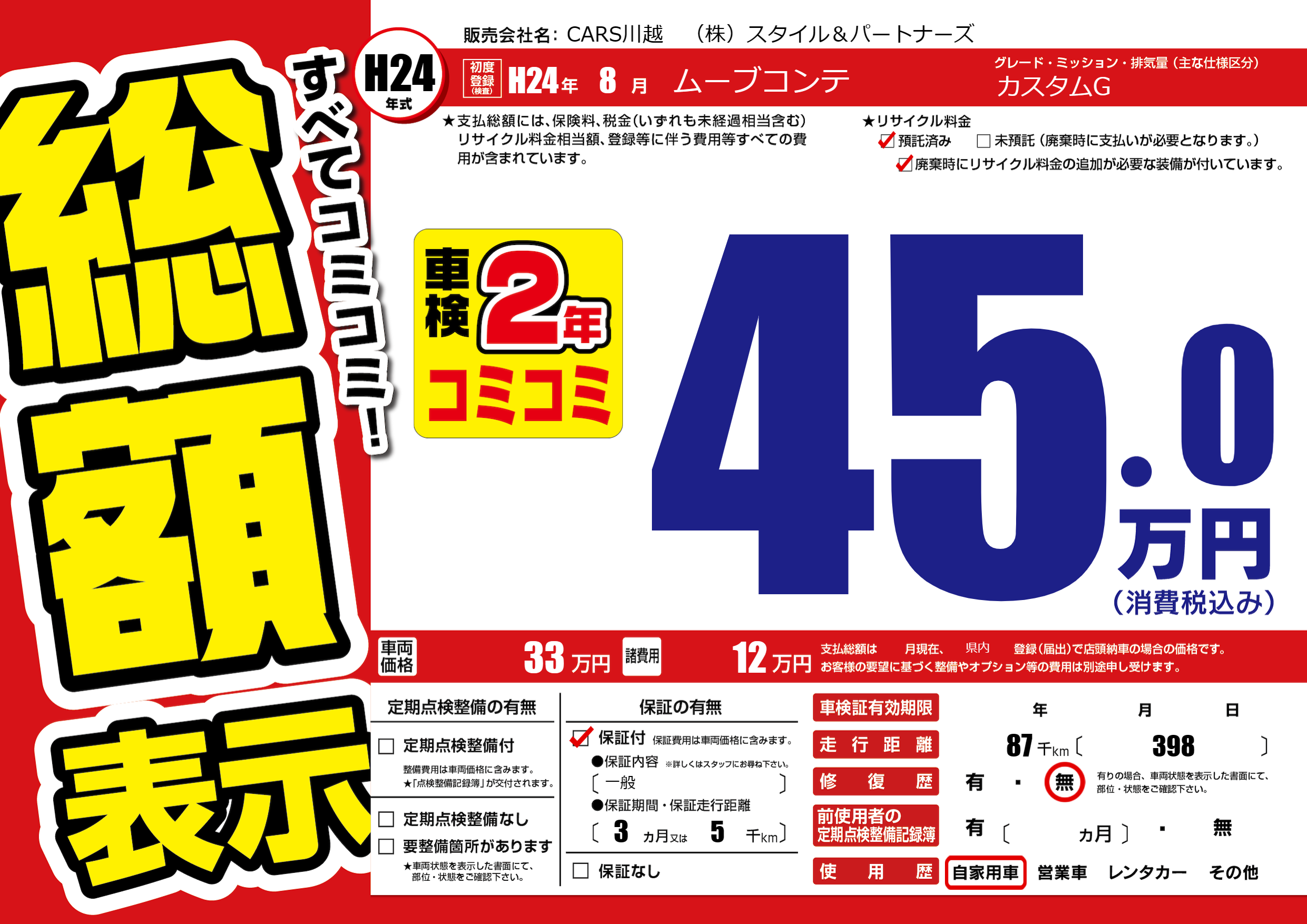 | 初年度登録 | H24年8月 | ||