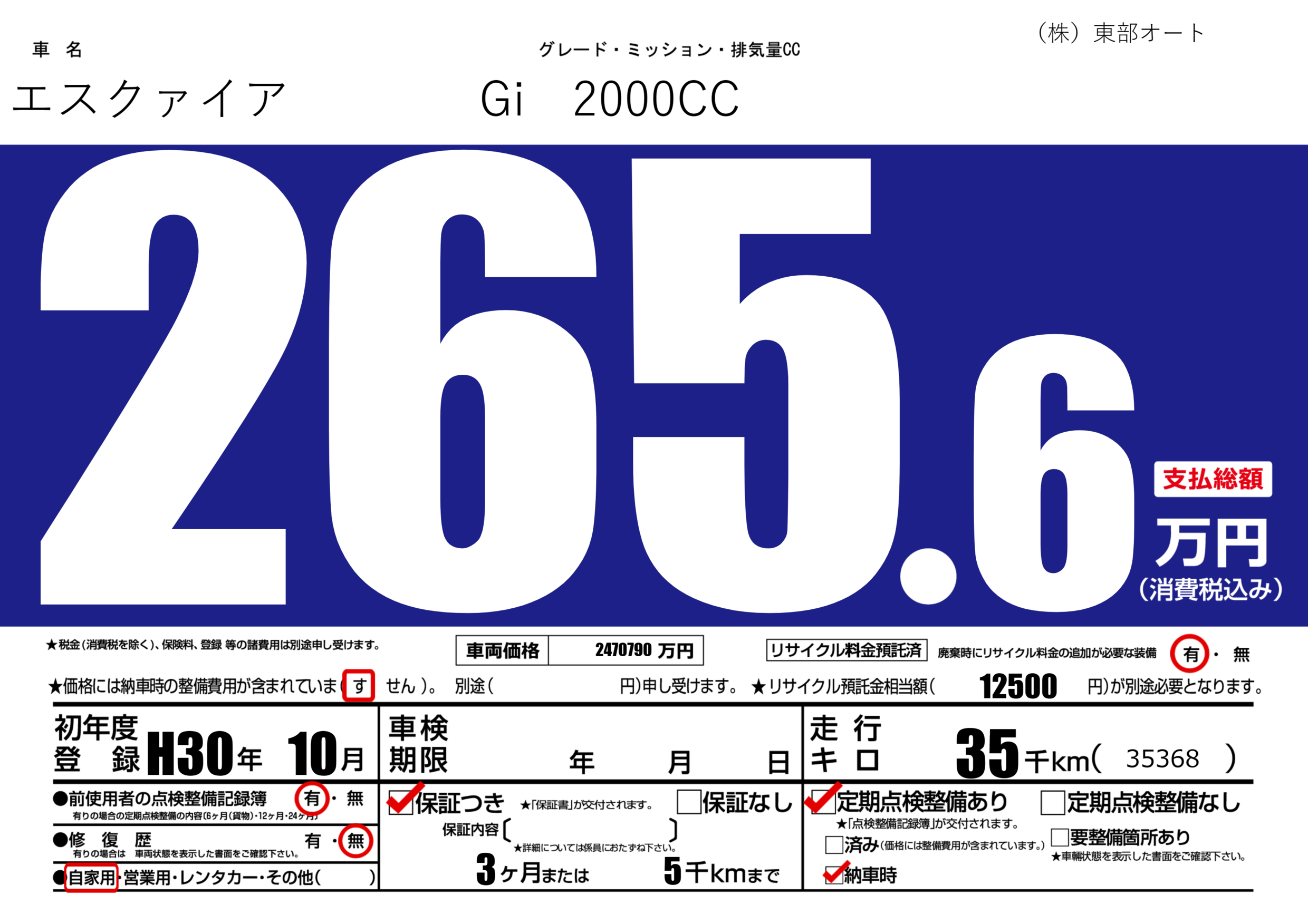 保証付き 保証内容(---) 3ヶ月または(5)千kmまで |