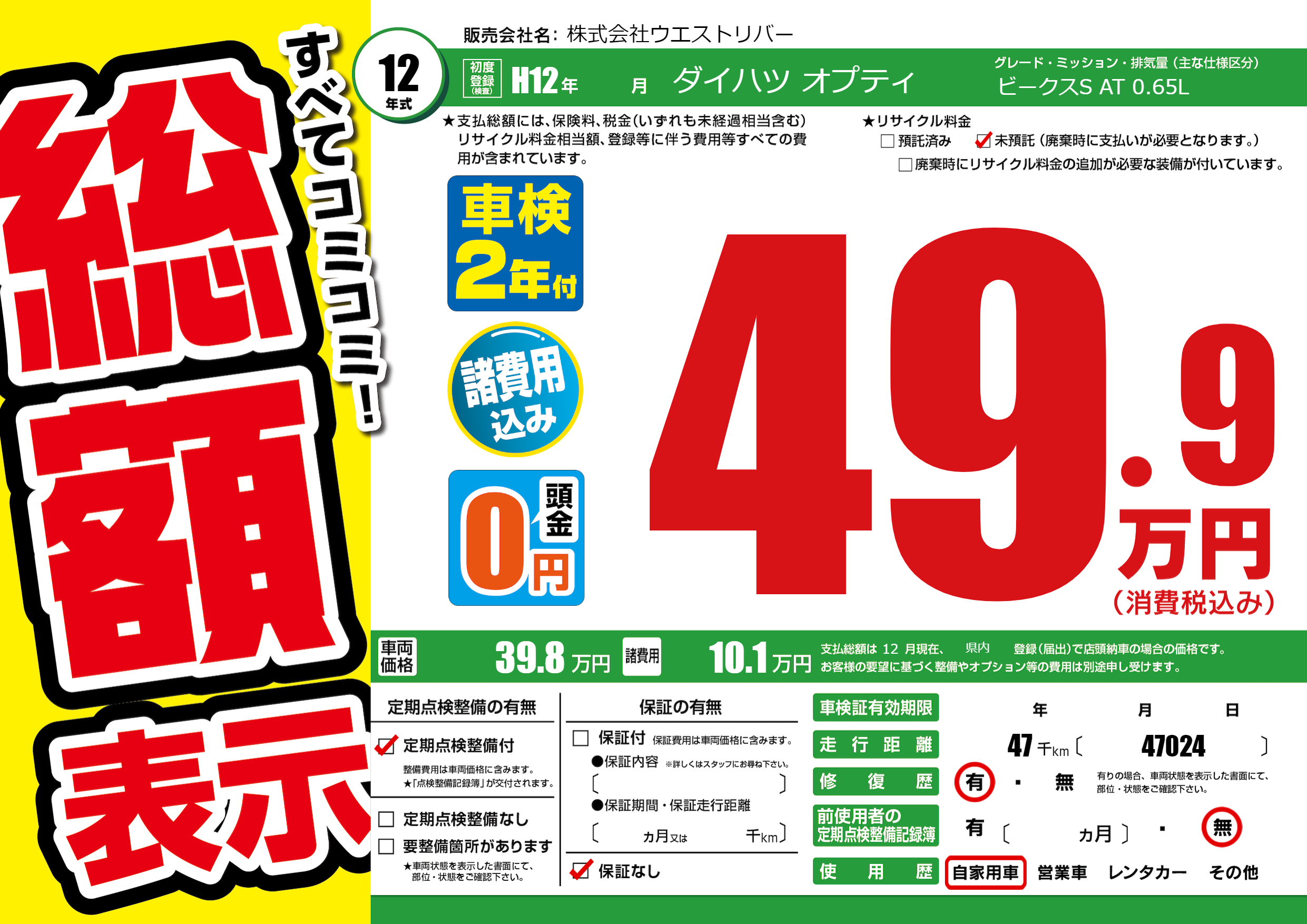 | 定期点検整備 | 定期点検整備あり | ||