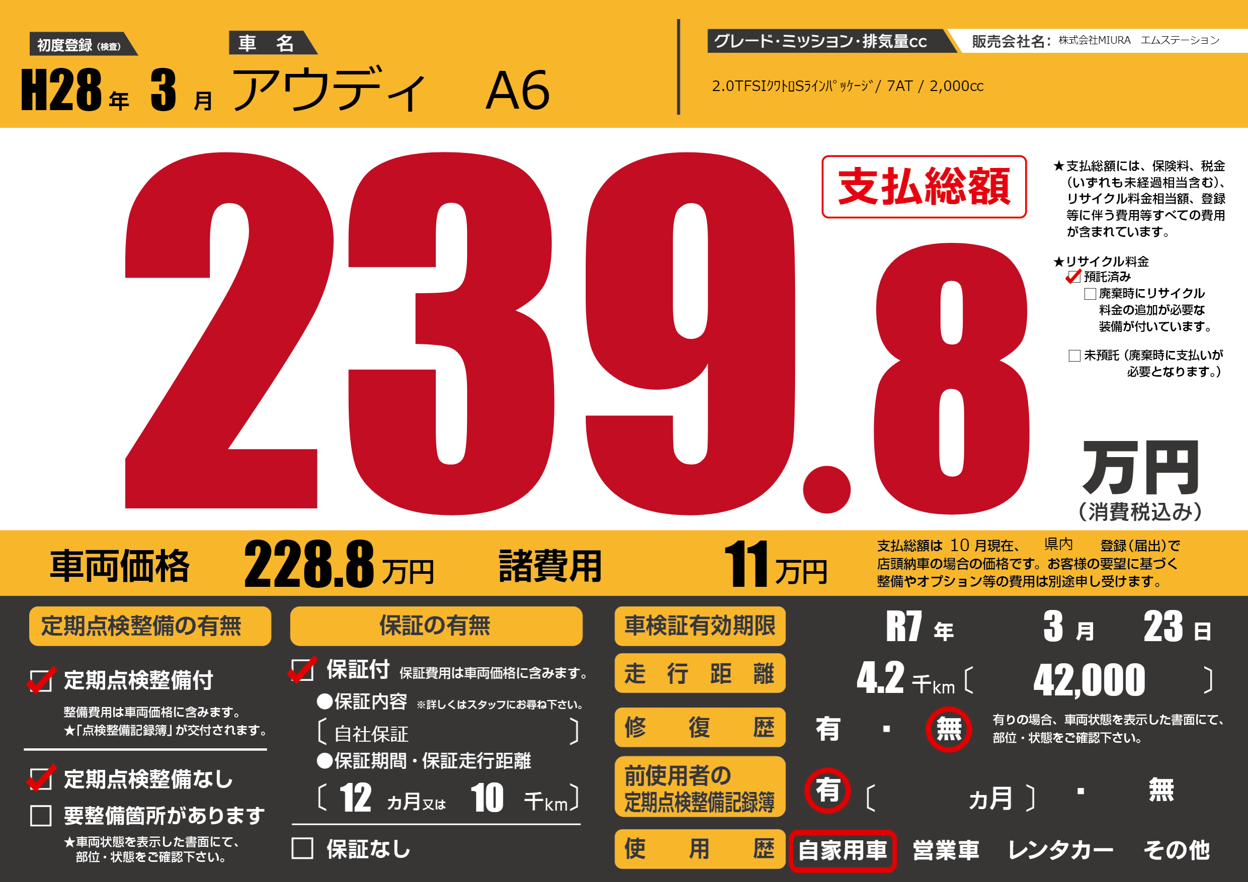 | 車検制限 | R7年 3月 23日 | ||