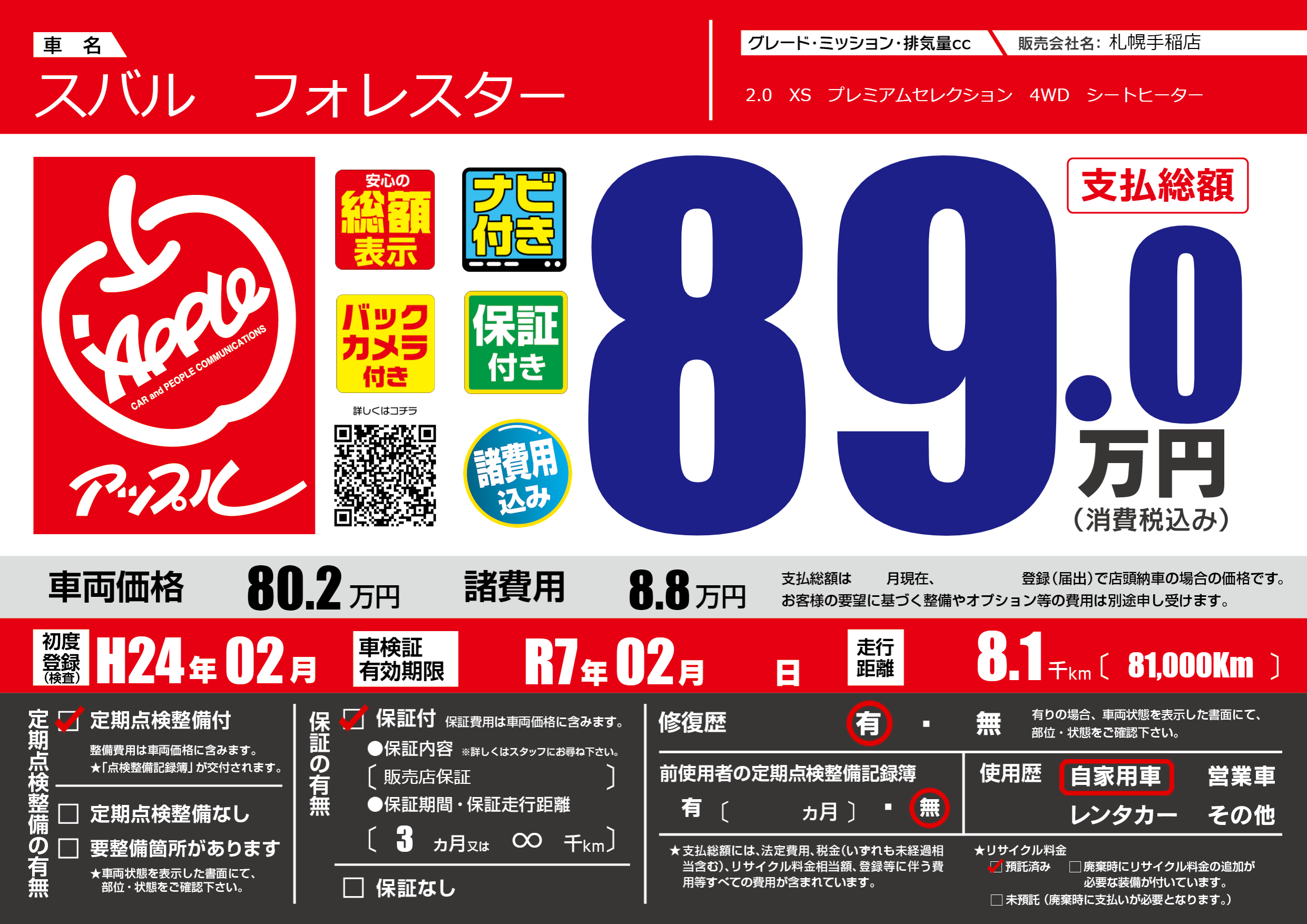 | 車名 | スバル フォレスター | グレード ミッション 排気量 |