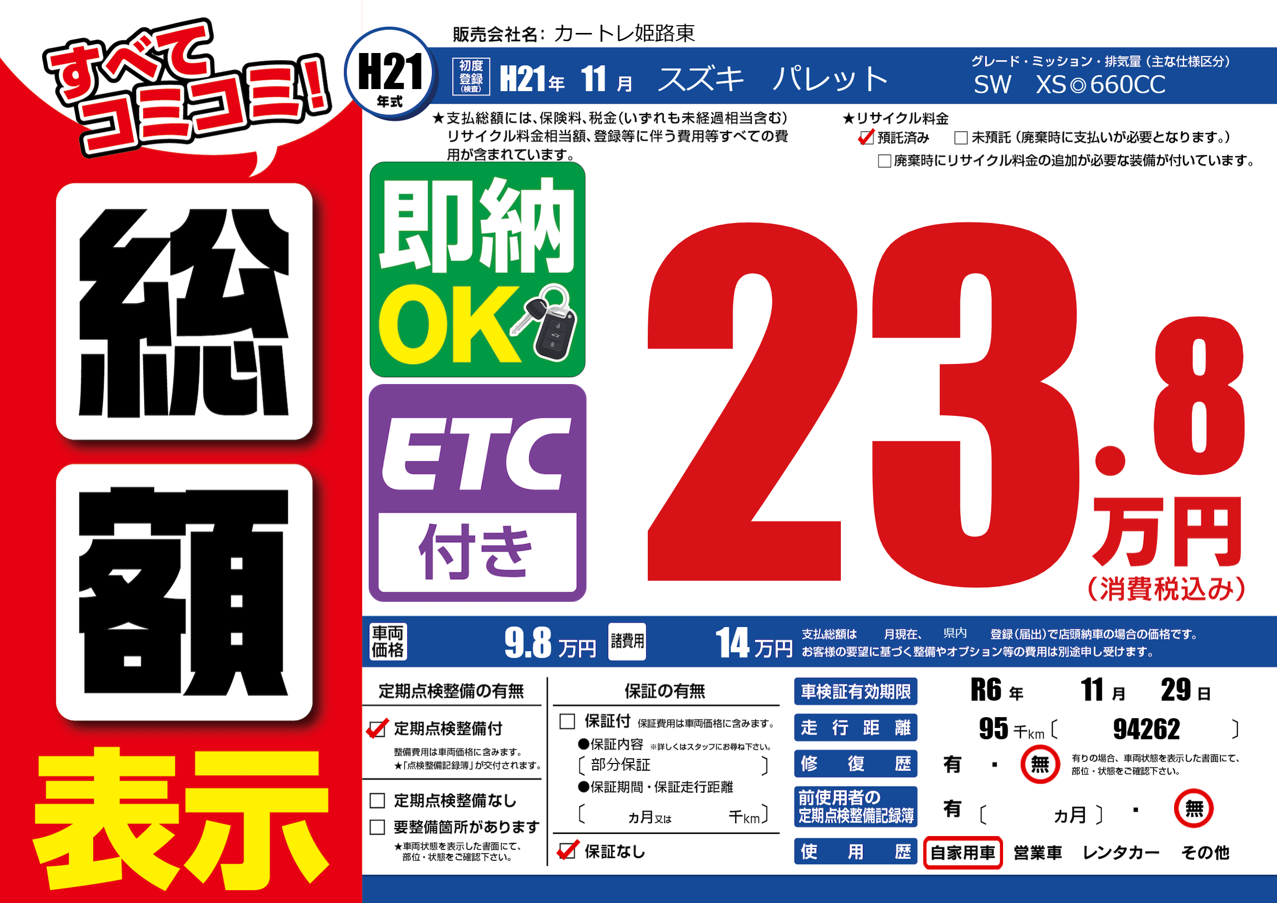 なし | 車検制限 | R6年11月29月 |