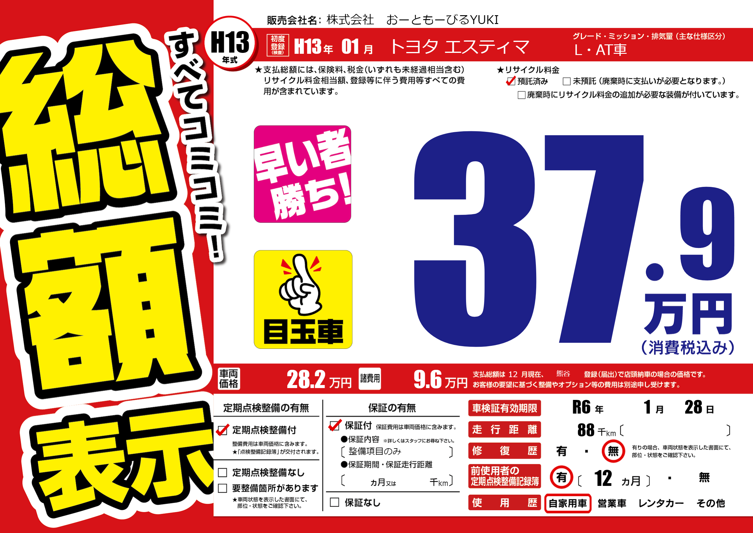 | 走行キロ | 8.8万km | 初年度登録 | H13年01月 |