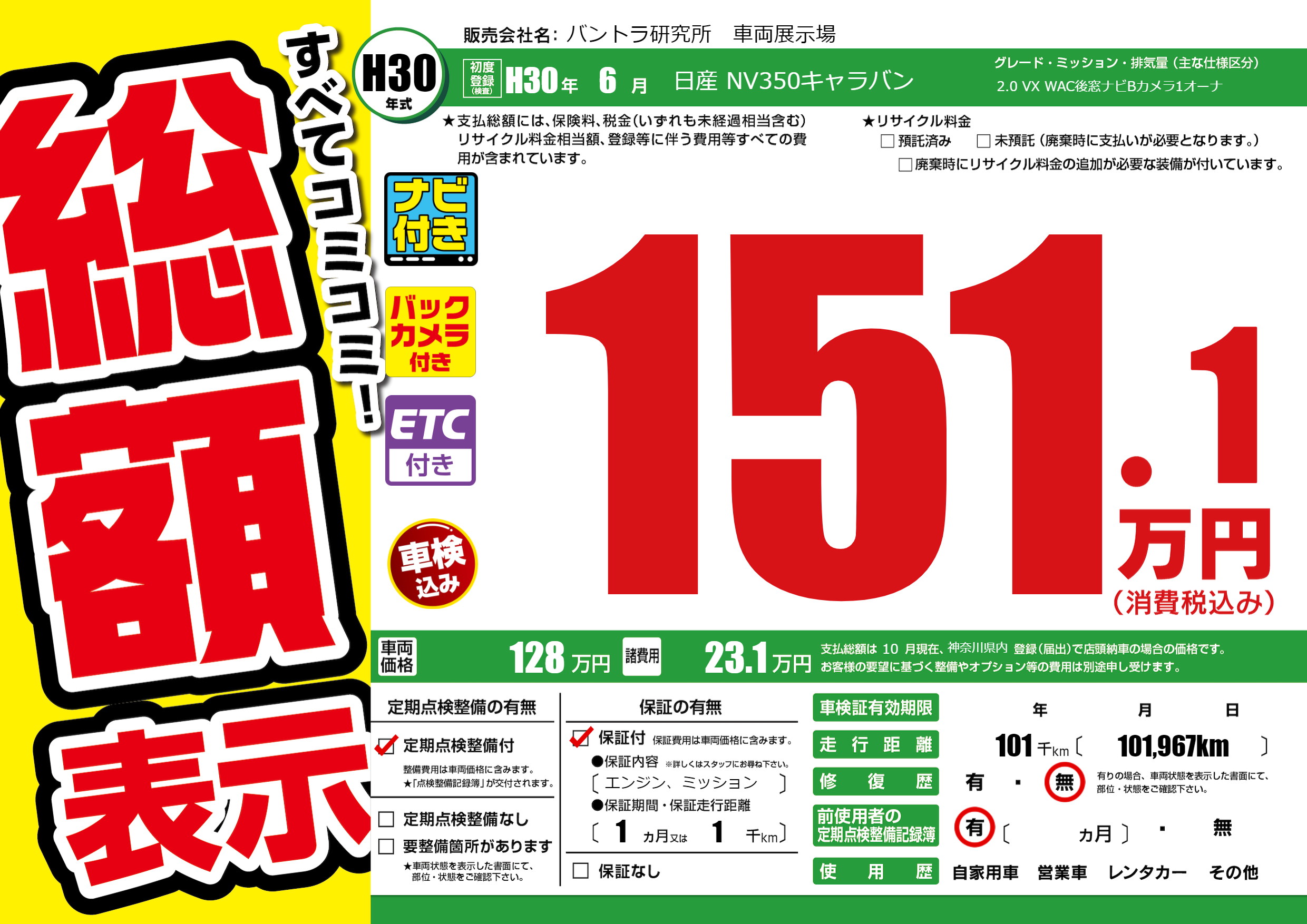 | 車名 | 日産 NV350キャラバン | グレード ミッション 排気量 |