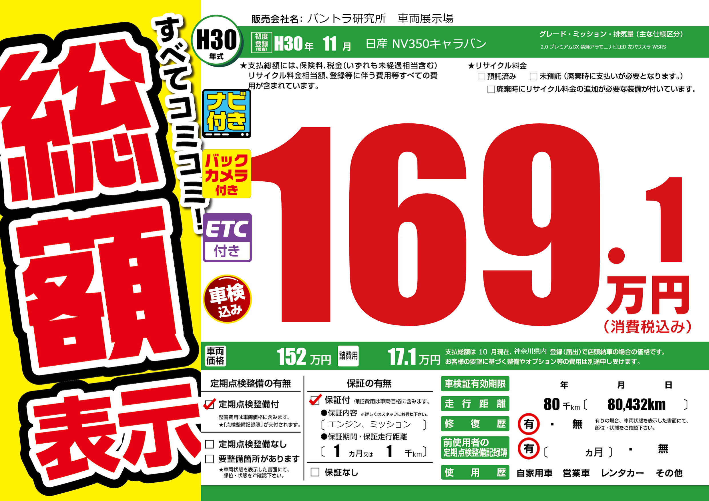 | 定期点検整備 | 定期点検整備あり | ||