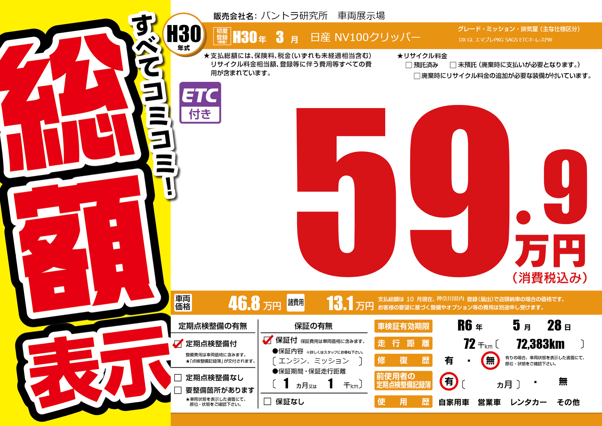 | 車名 | 日産 NV100クリッパー | グレード ミッション 排気量 |