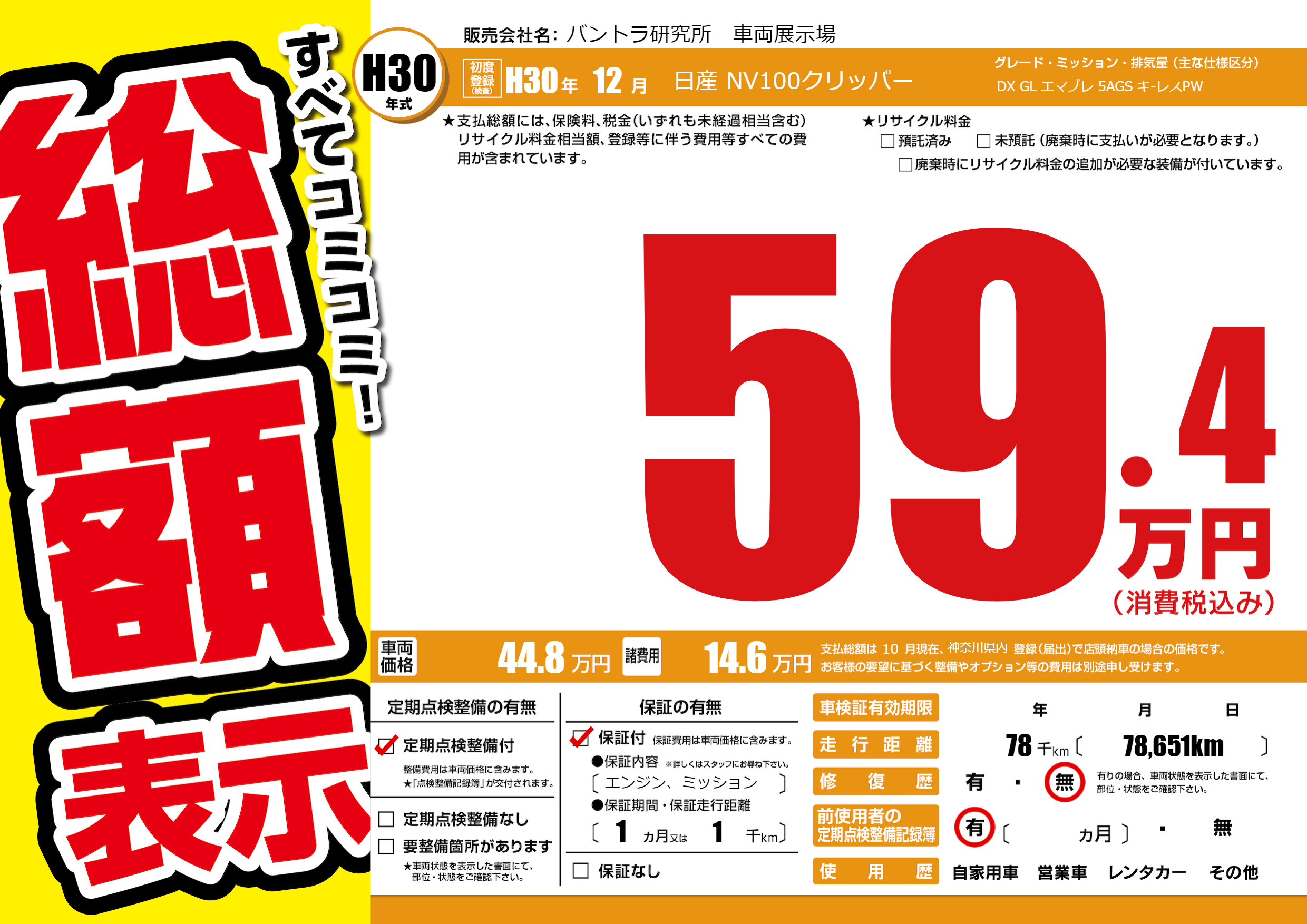 | 車名 | 日産 NV100クリッパー | グレード ミッション 排気量 |
