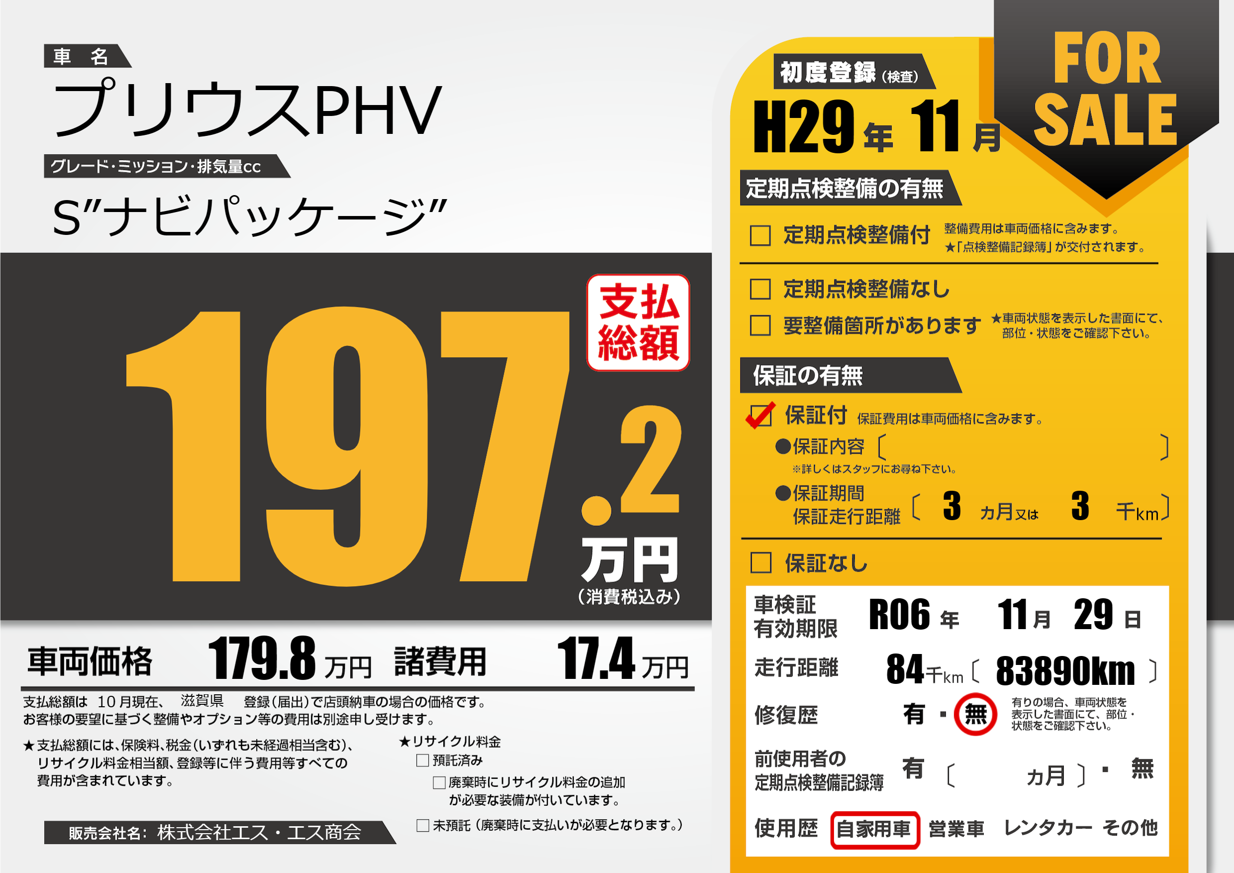 なし | 車検制限 | R06年11月29月 |