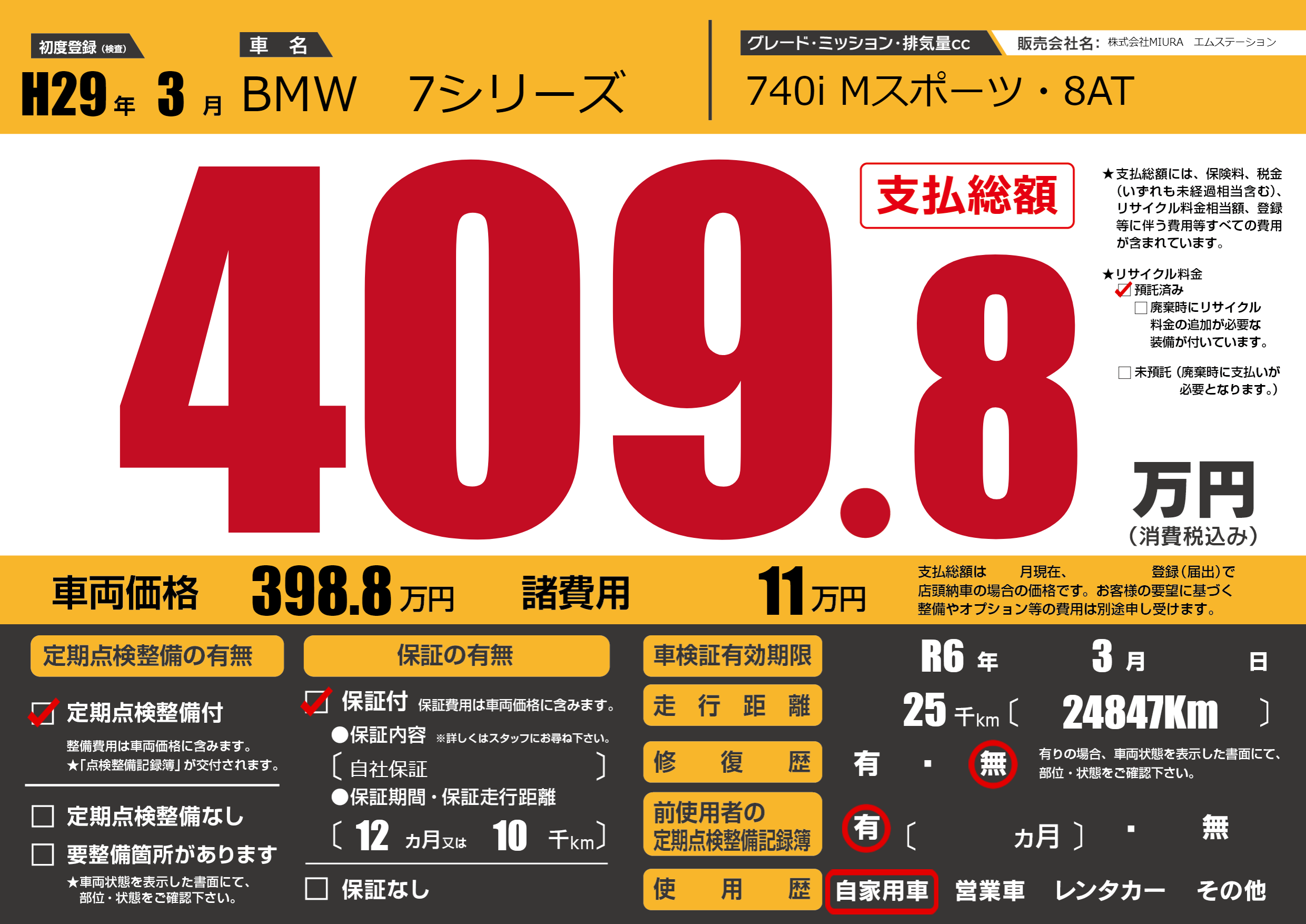 | 車検制限 | R6年 3月 - 日 | ||