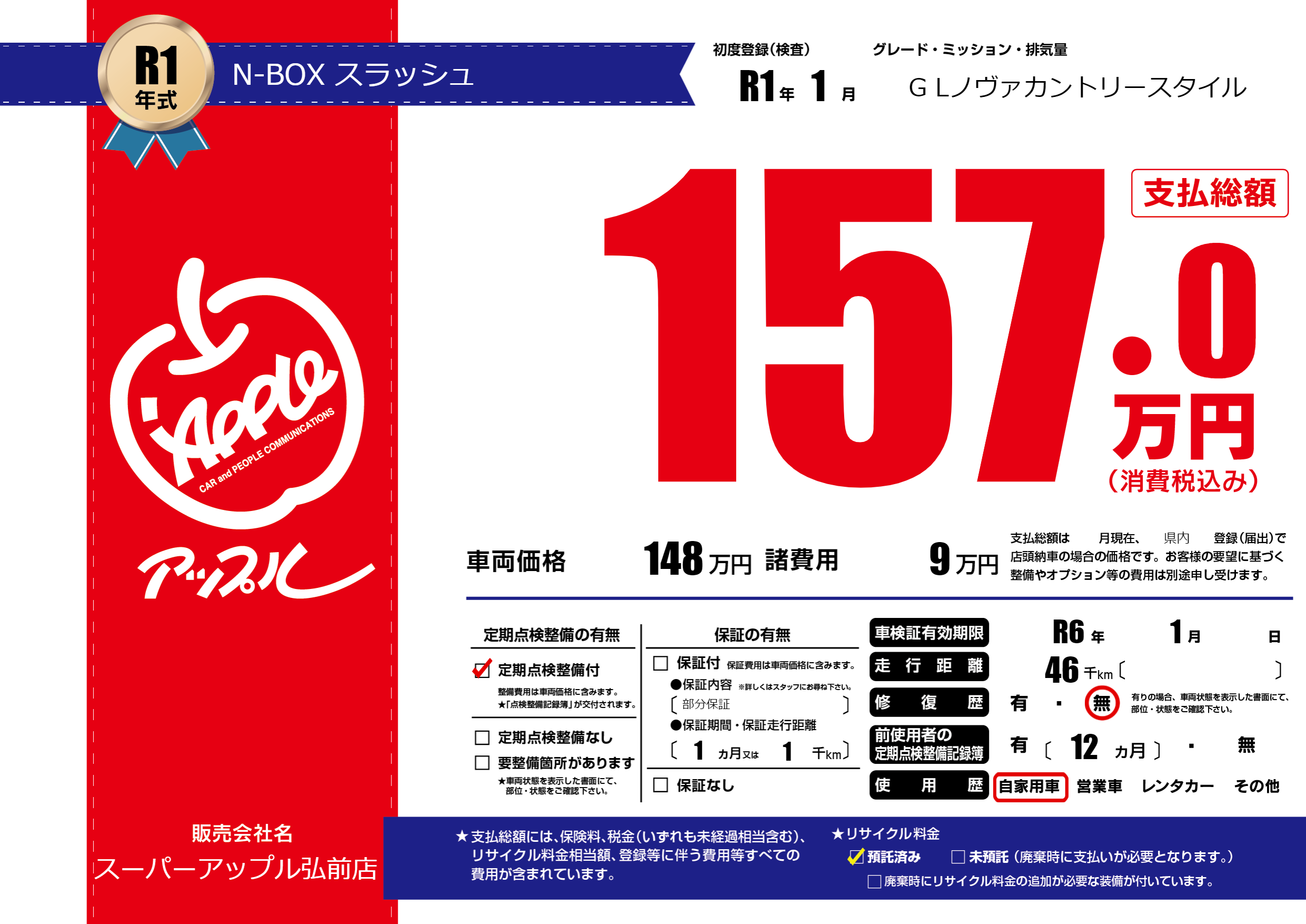 | 車名 | N-BOX スラッシュ | グレード ミッション 排気量 |