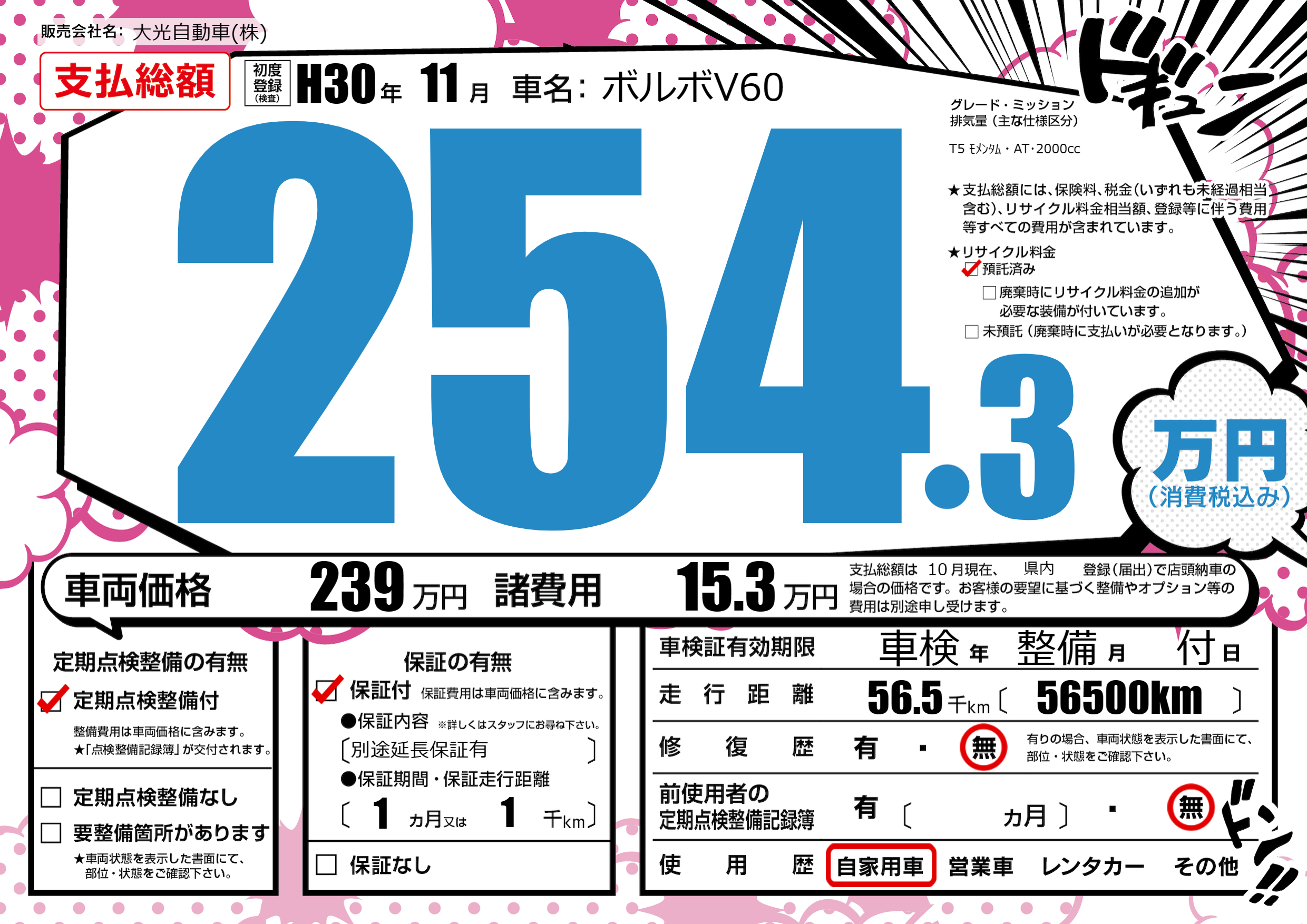 | 車名 | ボルボV60 | グレード ミッション 排気量 |
