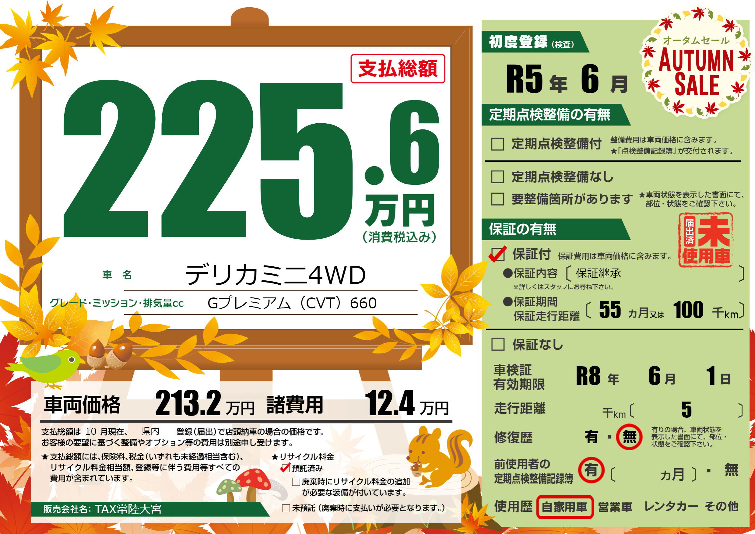 保証付き 保証内容(保証継承) 55ヶ月または(100)千kmまで |