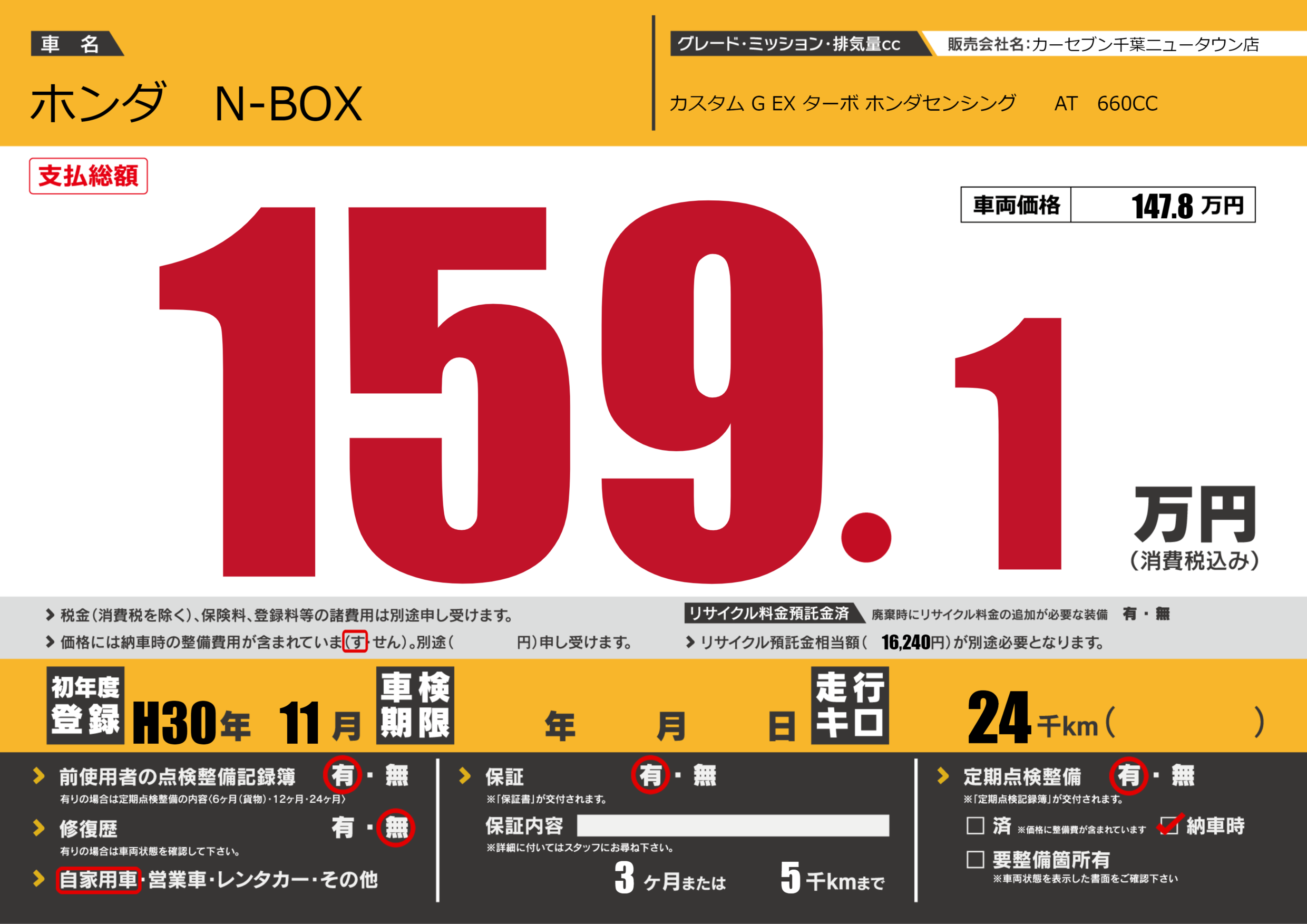 | 定期点検整備 | 定期点検整備あり 納車時あり | ||
