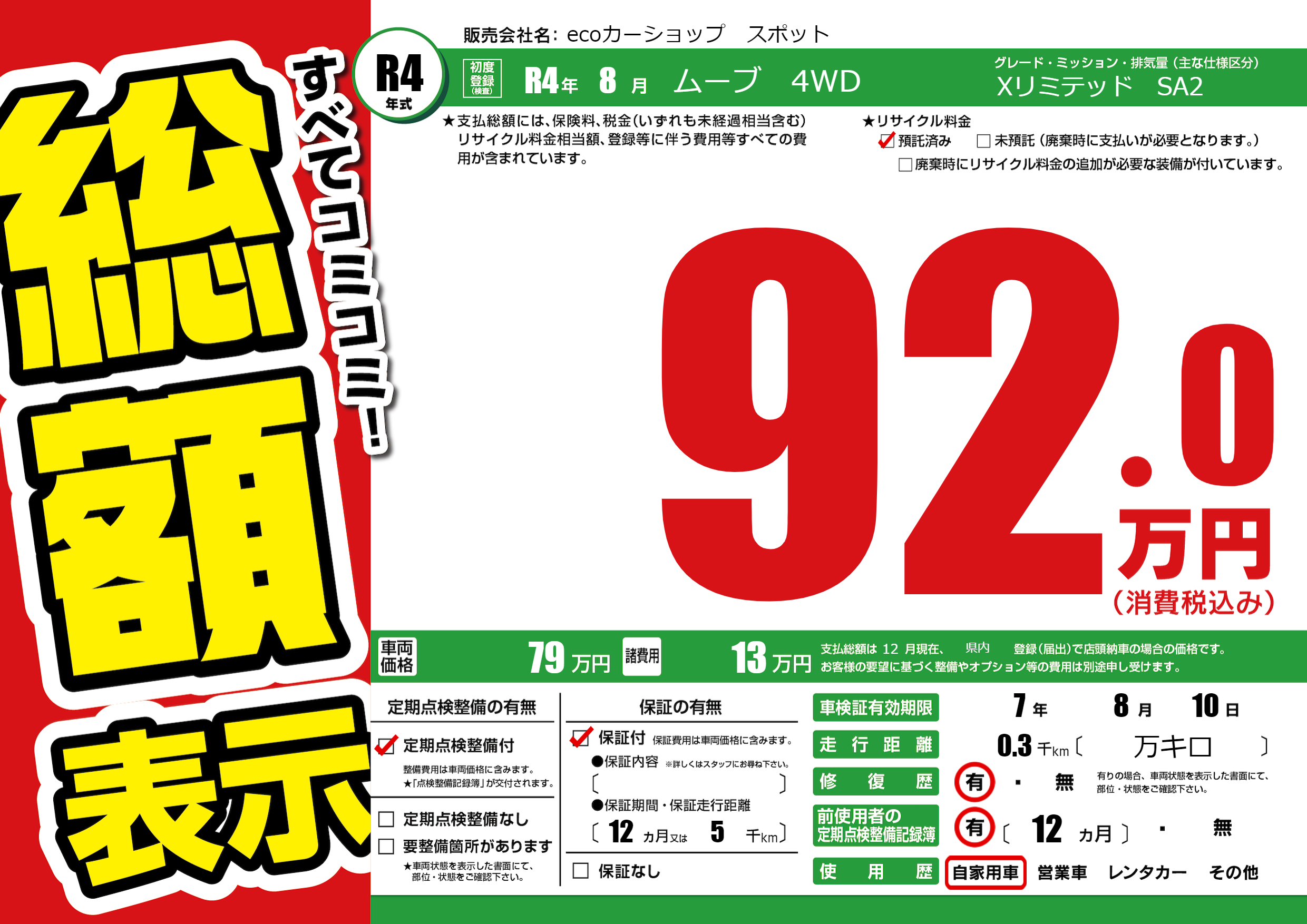 | 車検制限 | 7年 8月 10日 | ||