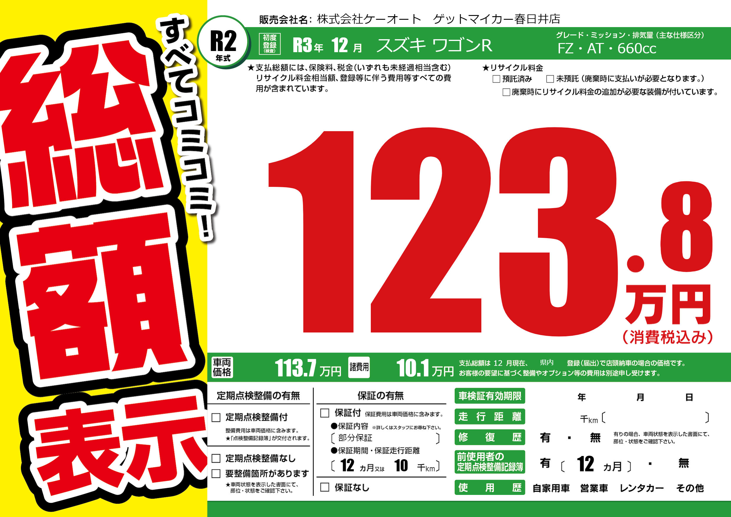 株式会社ケーオート ゲットマイカー春日井店の展示車