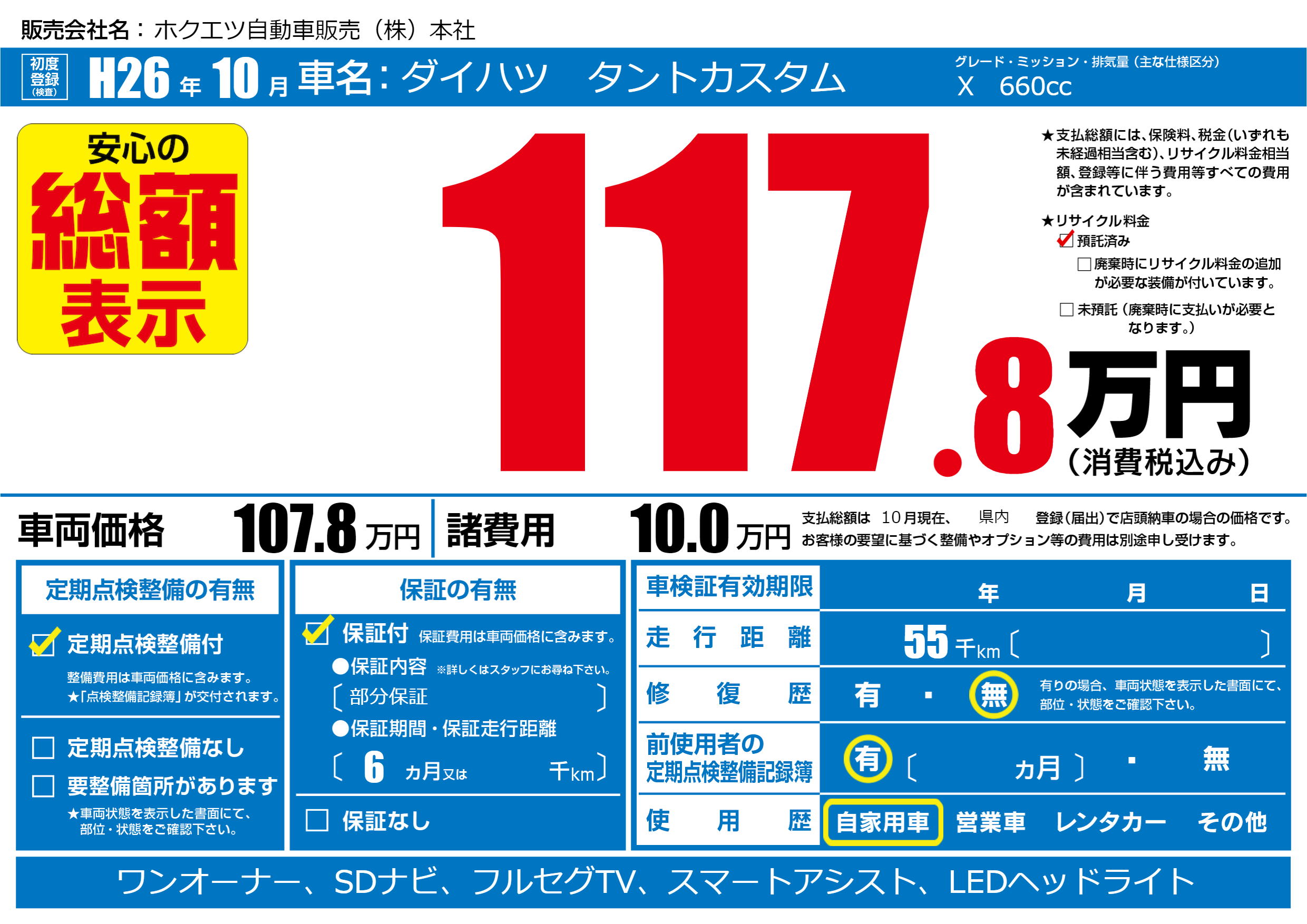 | 走行キロ | 5.5万km | 初年度登録 | H26年10月 |