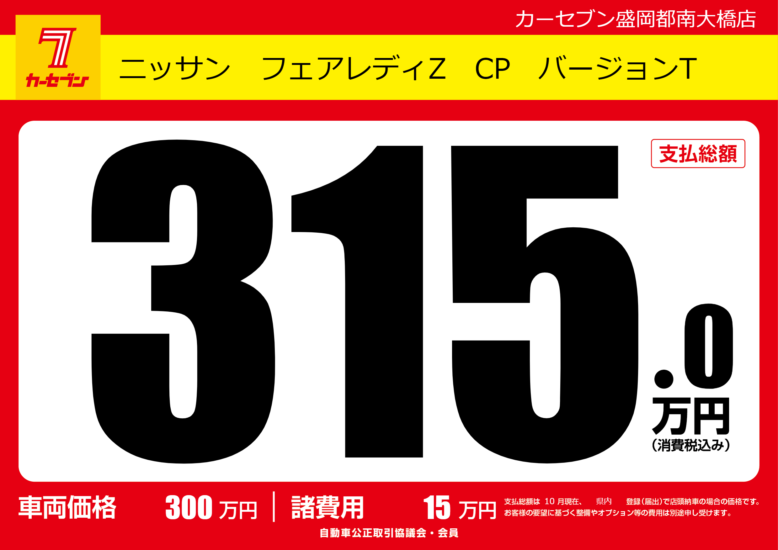 | 車名 | ニッサン フェアレディZ CP バージョンT | グレード ミッション 排気量 |