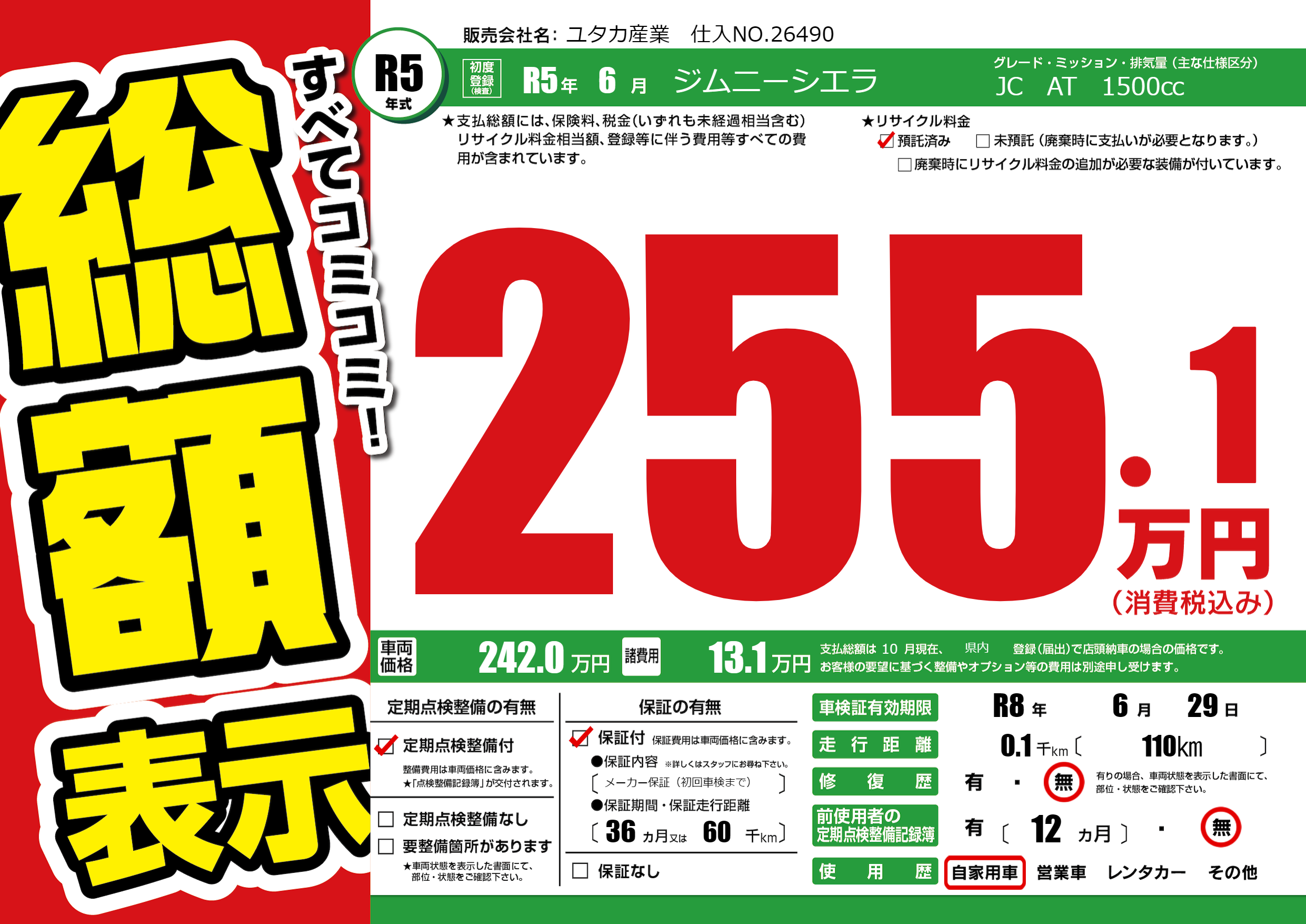 | 車名 | ジムニーシエラ | グレード ミッション 排気量 |