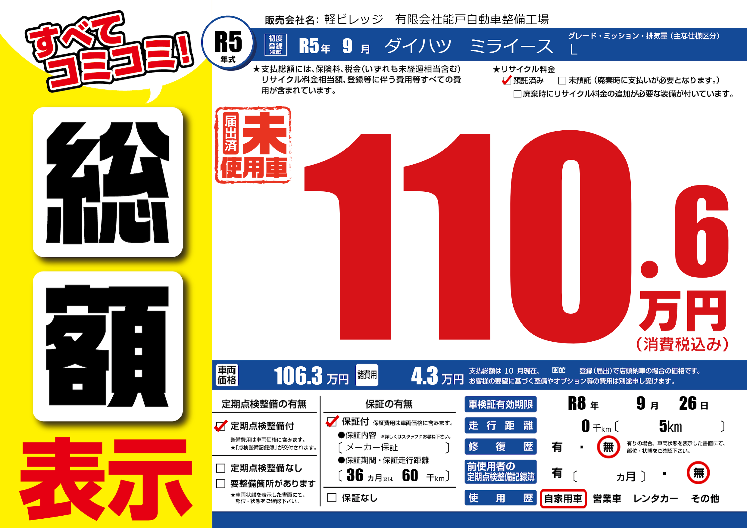 | 走行キロ | - | 初年度登録 | R5年9月 |