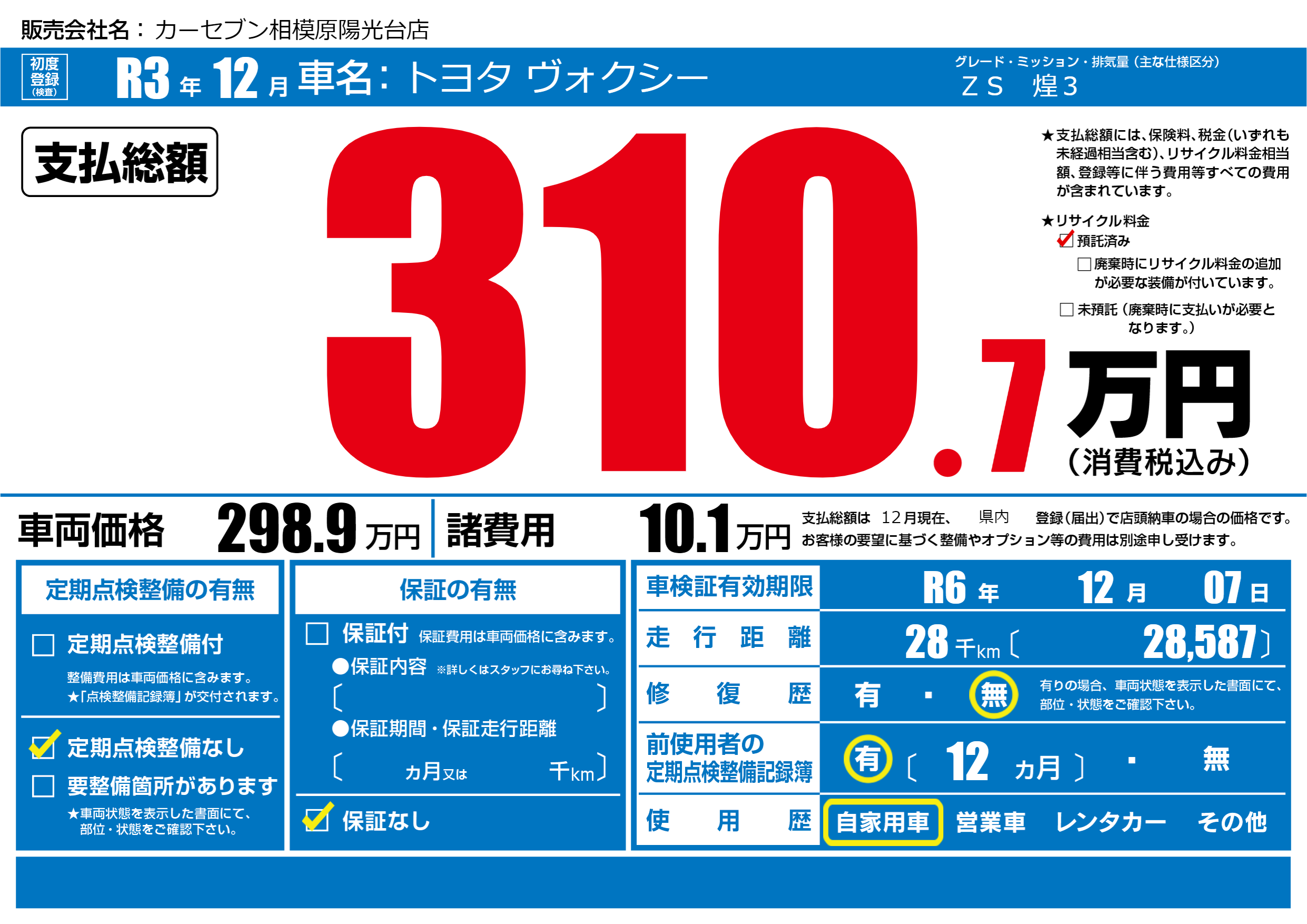 | 走行キロ | 2.8万km | 初年度登録 | R3年12月 |