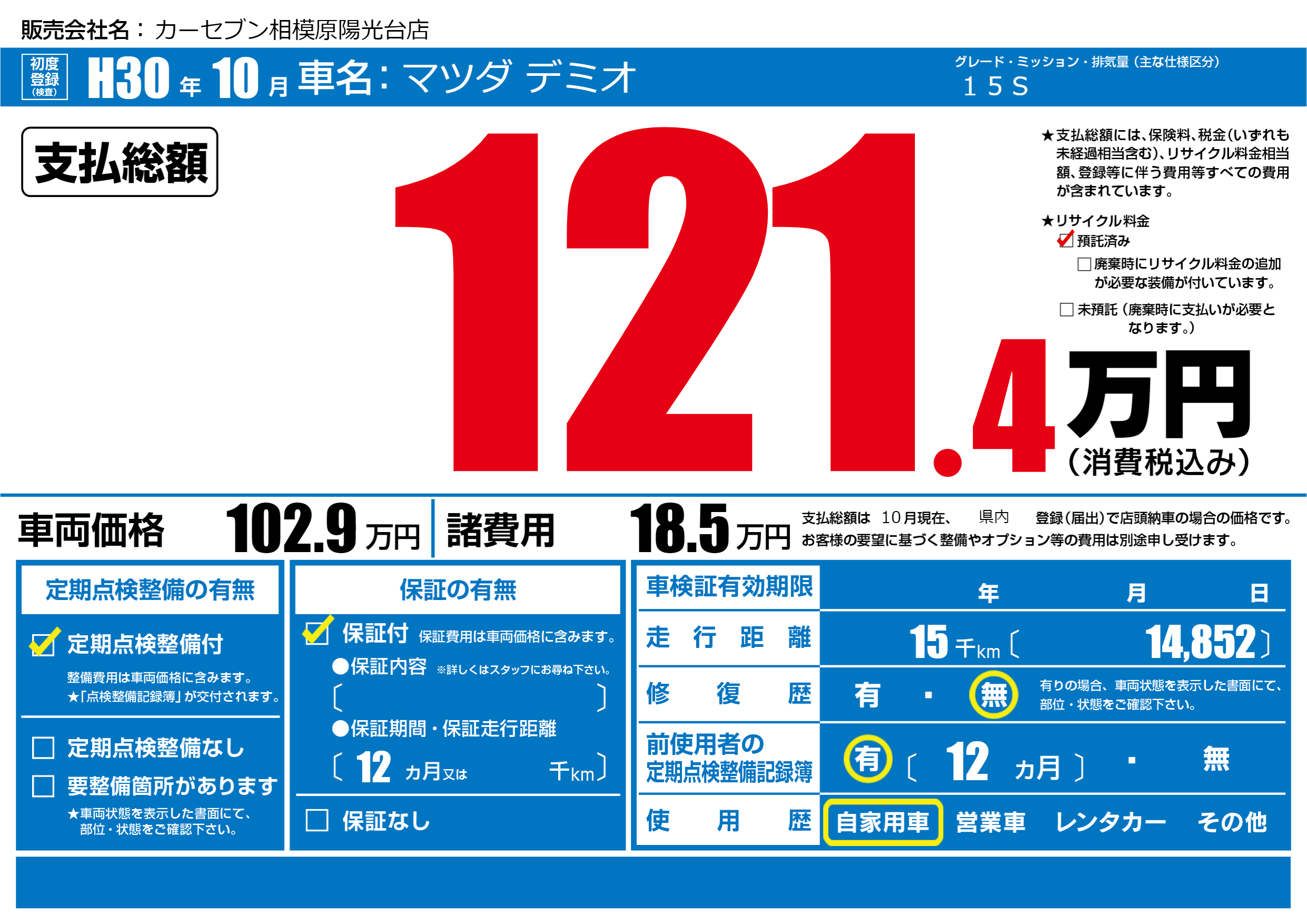| リサイクル料金 預託済 |