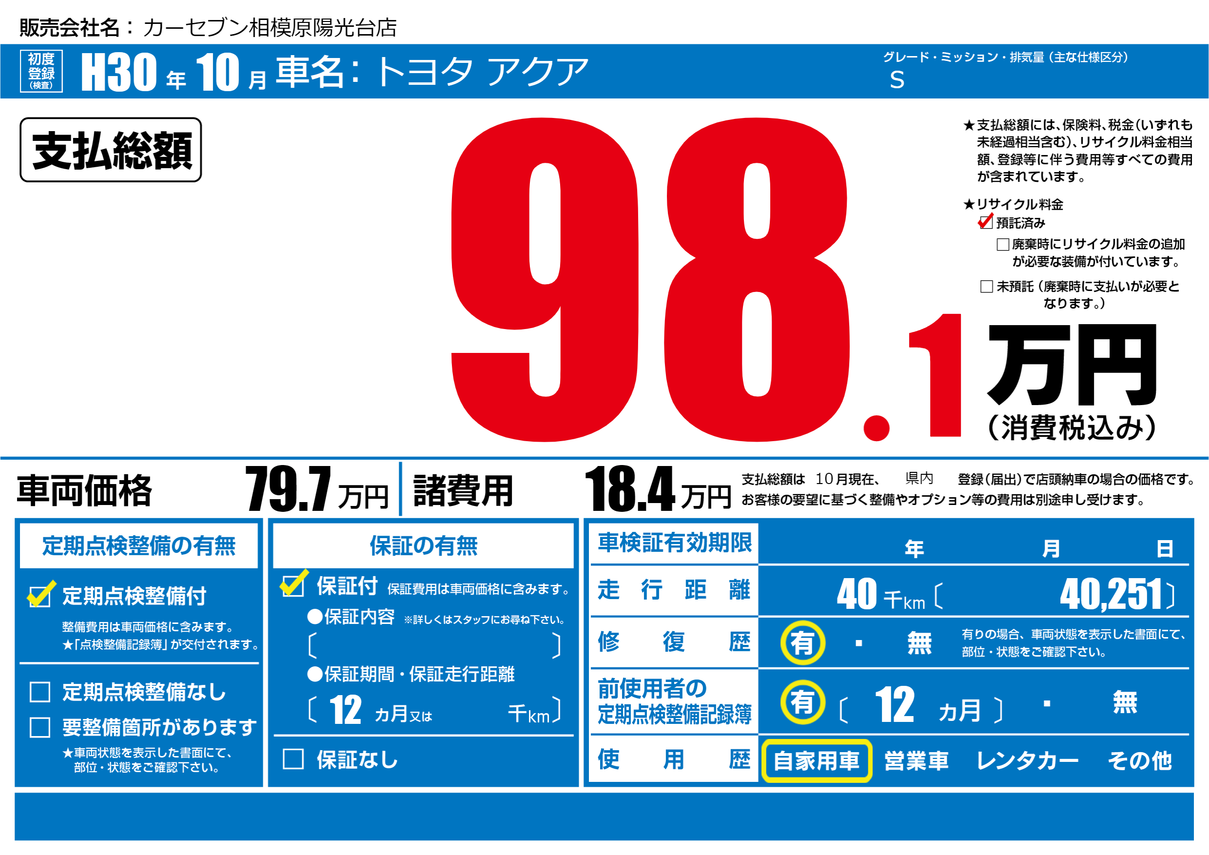 | 定期点検整備 | 定期点検整備あり | ||