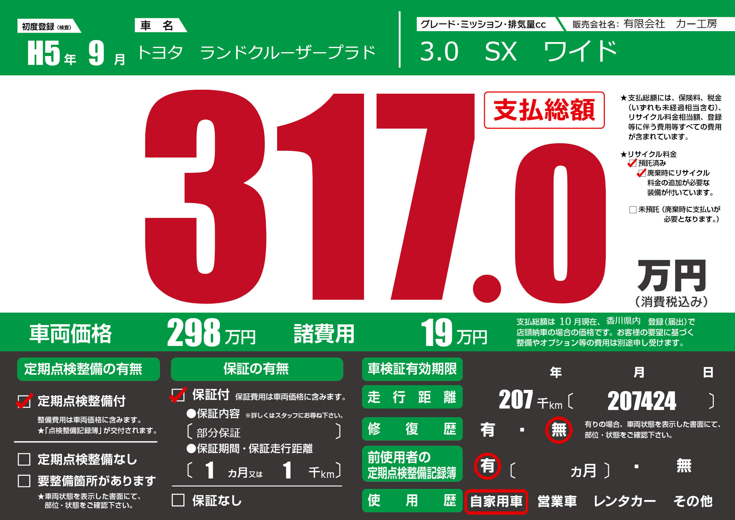 | 走行キロ | 20.7万km | 初年度登録 | H5年9月 |