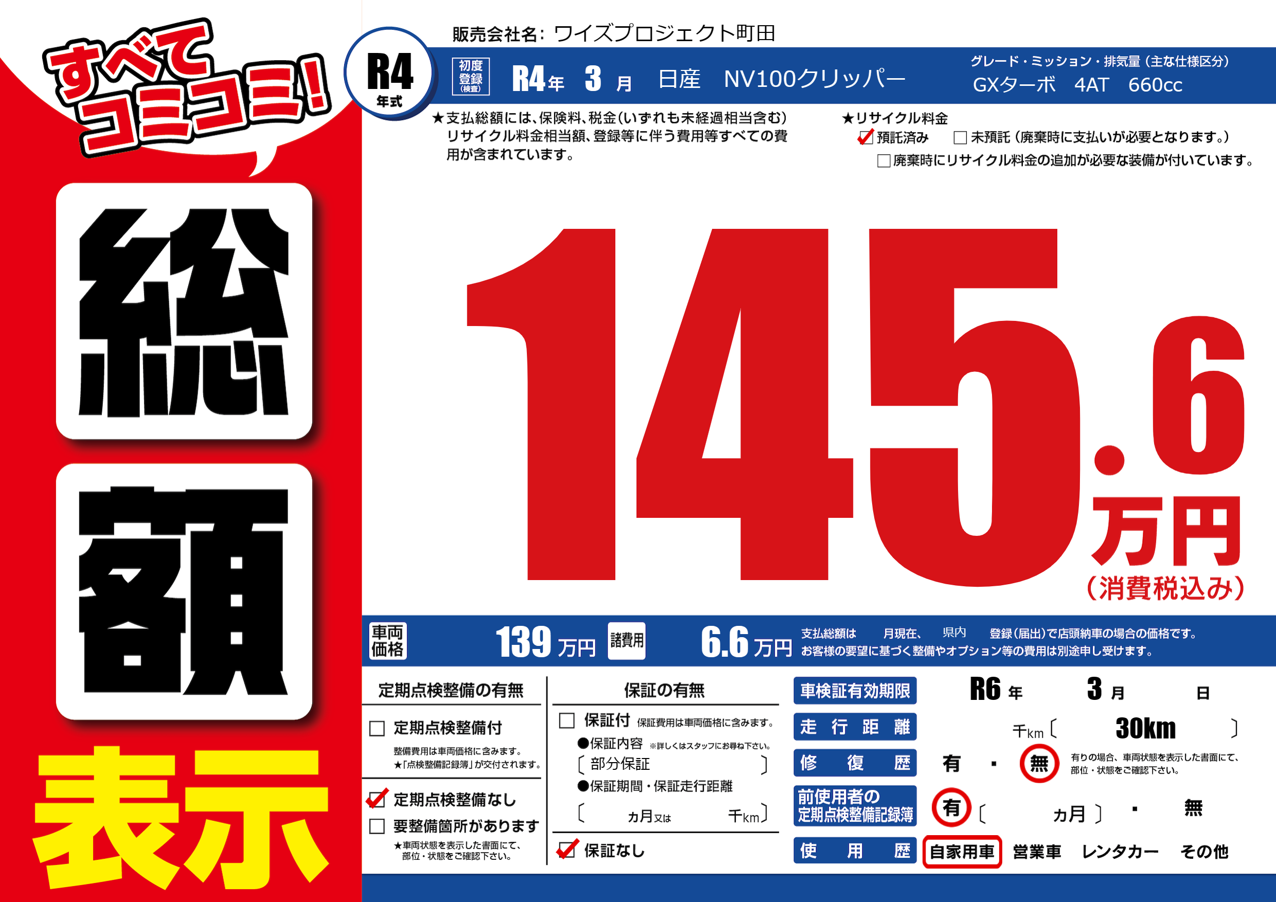保証なし 保証内容(部分保証) ---ヶ月または()千kmまで |