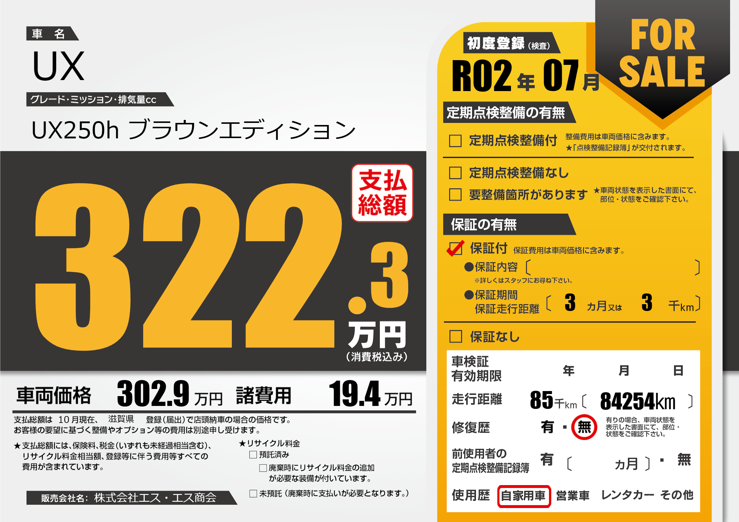 | 車検制限 | - 年 - 月 - 日 | ||