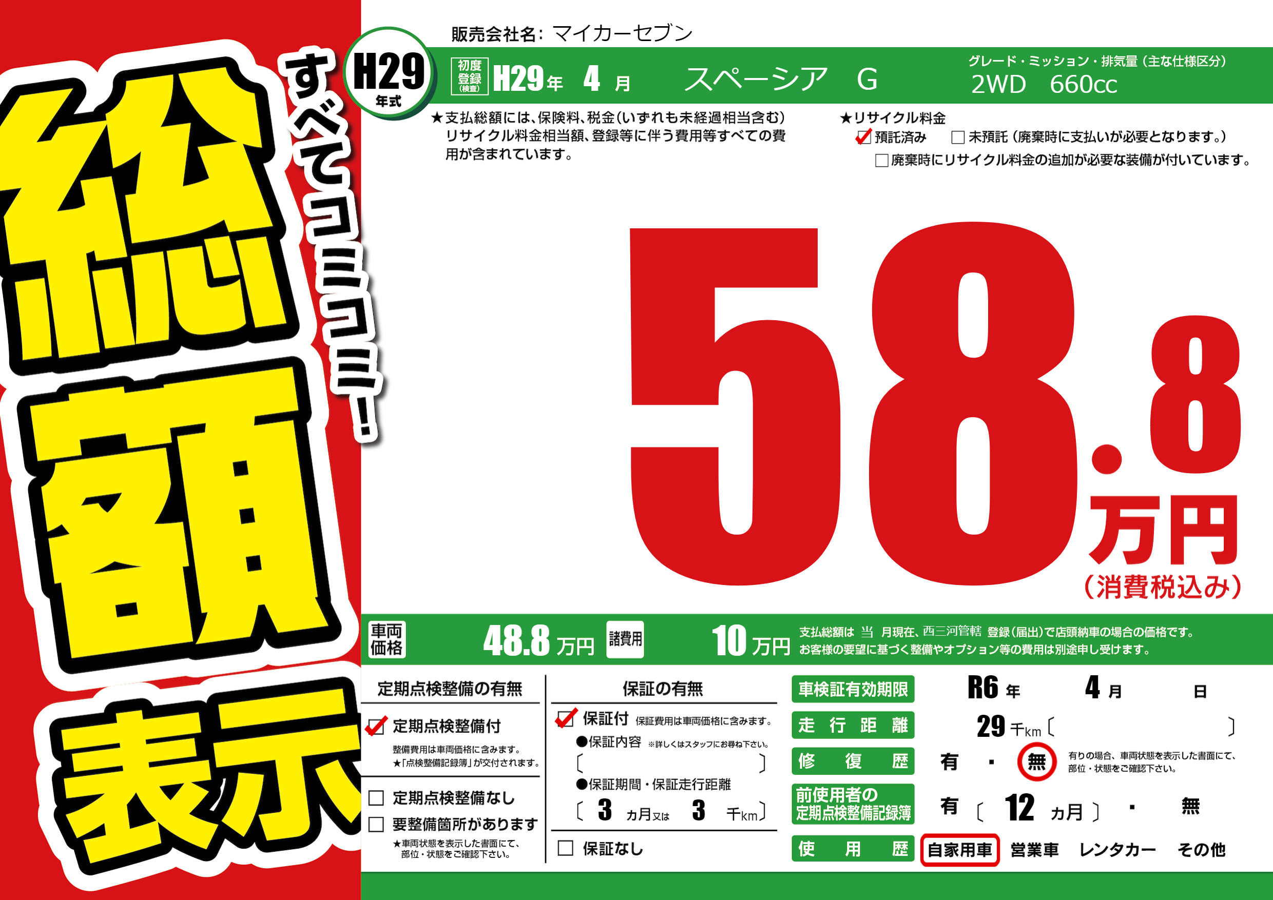 | 車名 | スペーシア G | グレード ミッション 排気量 |