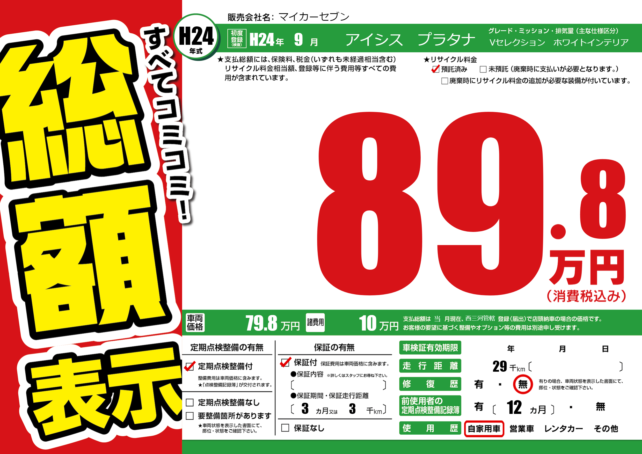 保証付き 保証内容(---) 3ヶ月または(3)千kmまで |