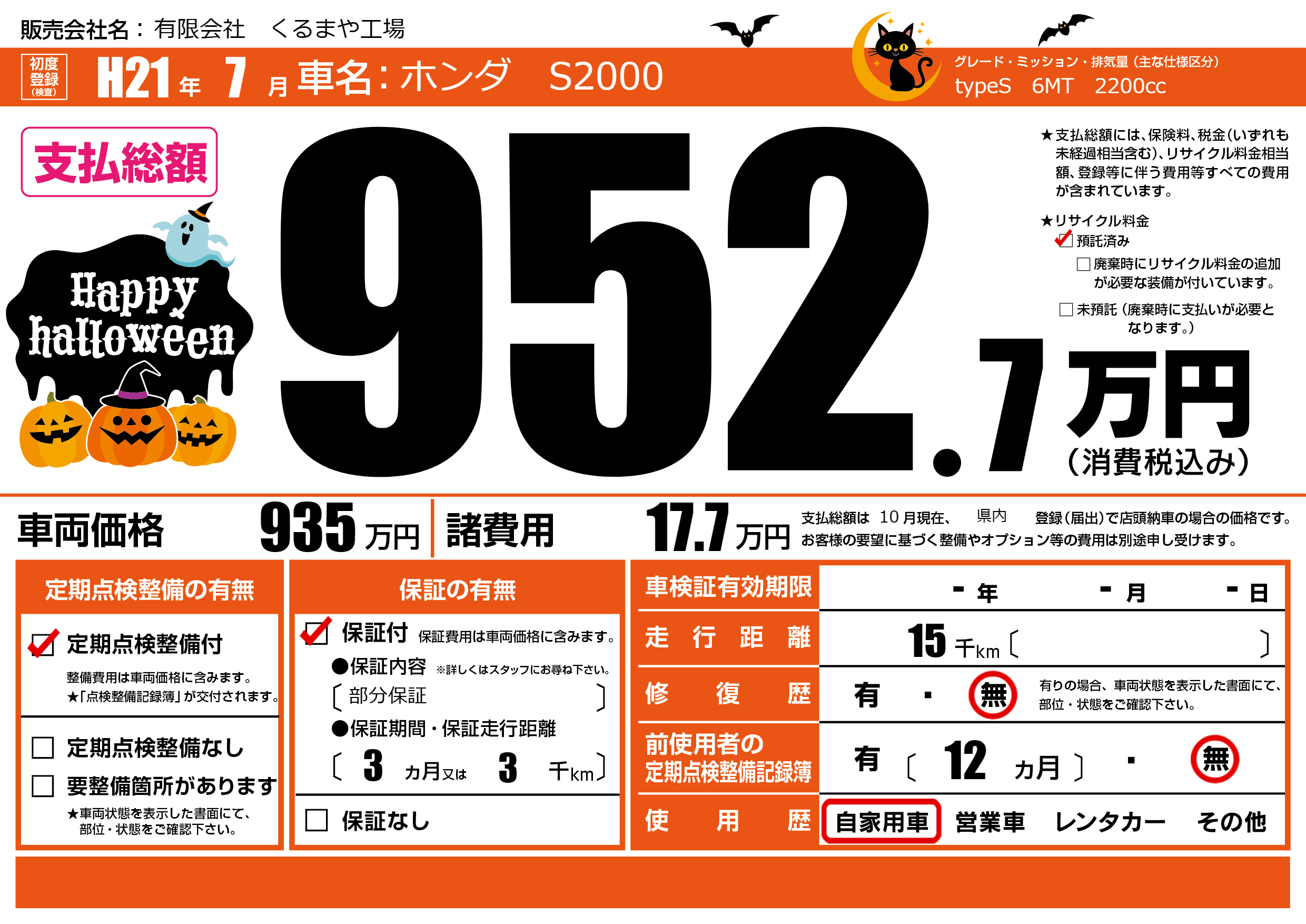 | 車名 | ホンダ S2000 | グレード ミッション 排気量 |