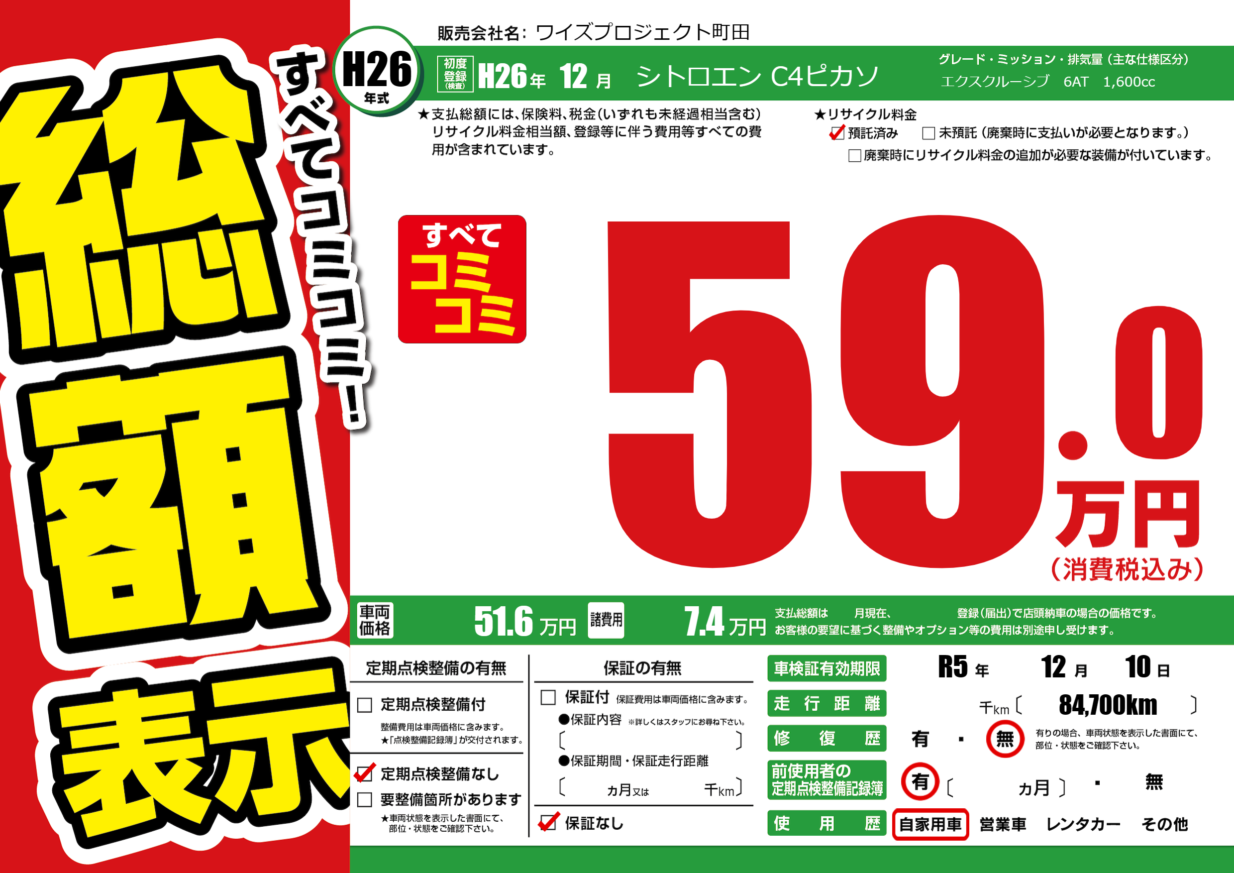 | 車名 | シトロエン C4ピカソ | グレード ミッション 排気量 |
