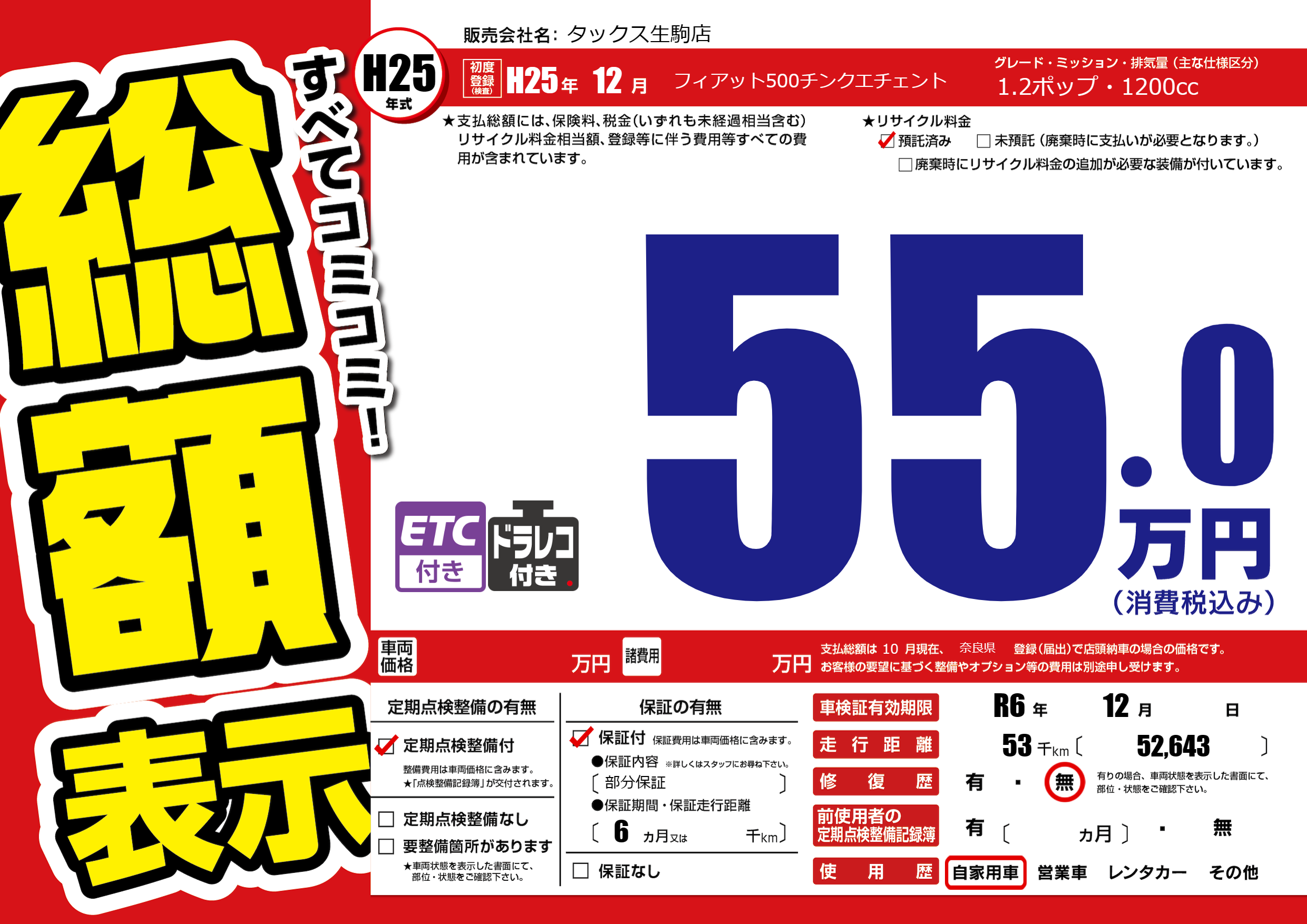 | 車検制限 | R6年 12月 - 日 | ||