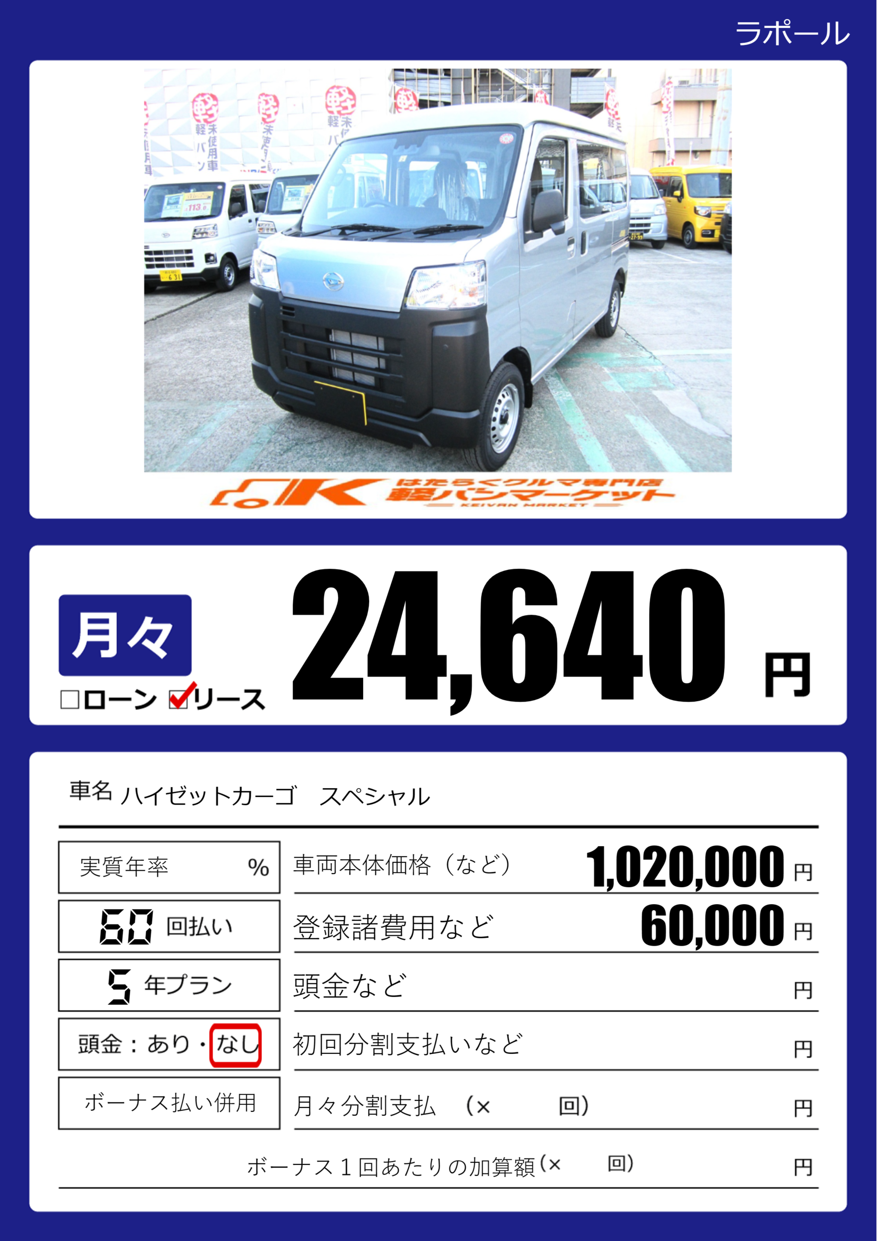 | 車名 | ハイゼットカーゴ スペシャル | グレード ミッション 排気量 |