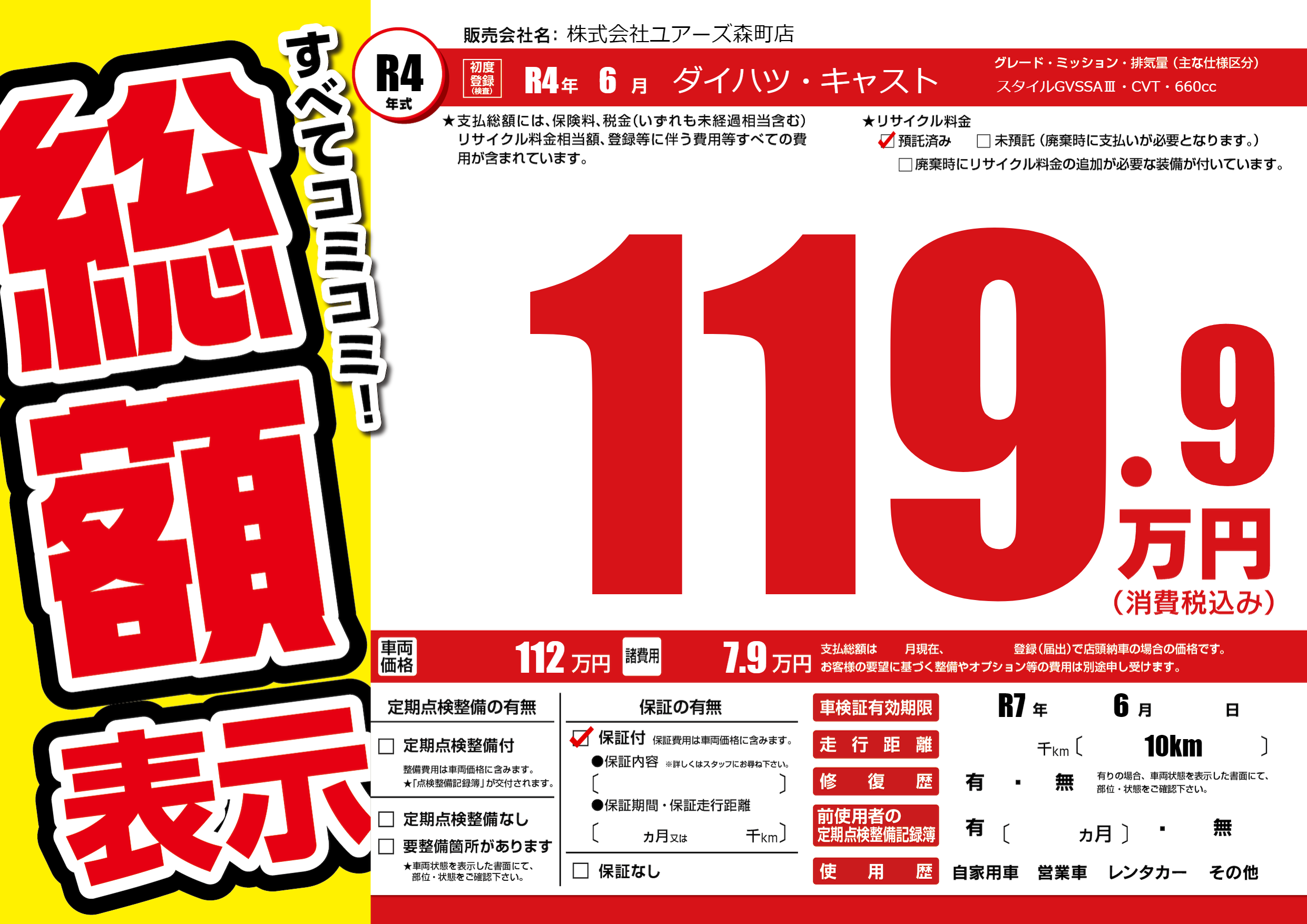 なし | 車検制限 | R7年6月---月 |