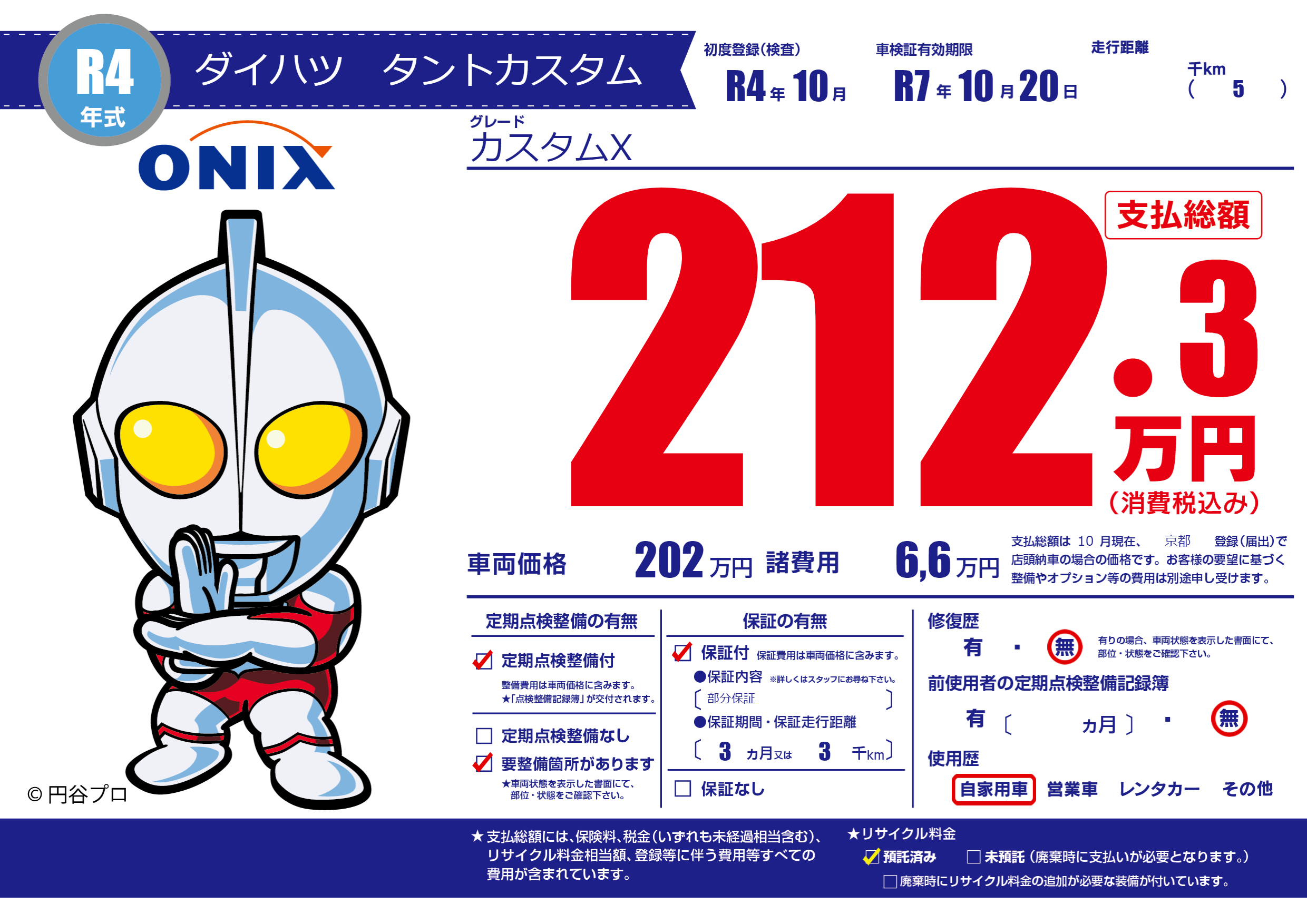 | 車検制限 | R7年 10月 20日 | ||