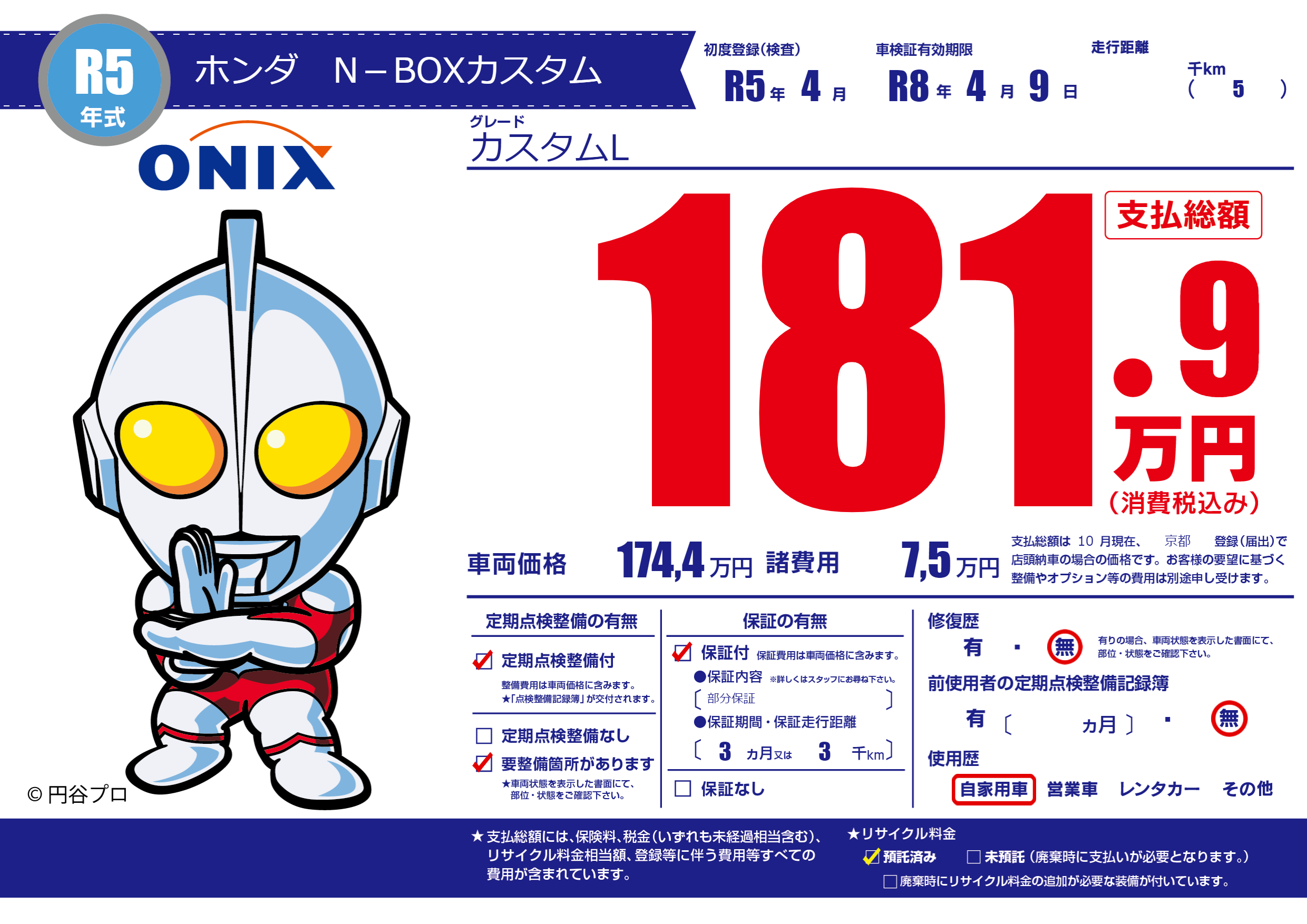 なし | 車検制限 | R8年4月9月 |