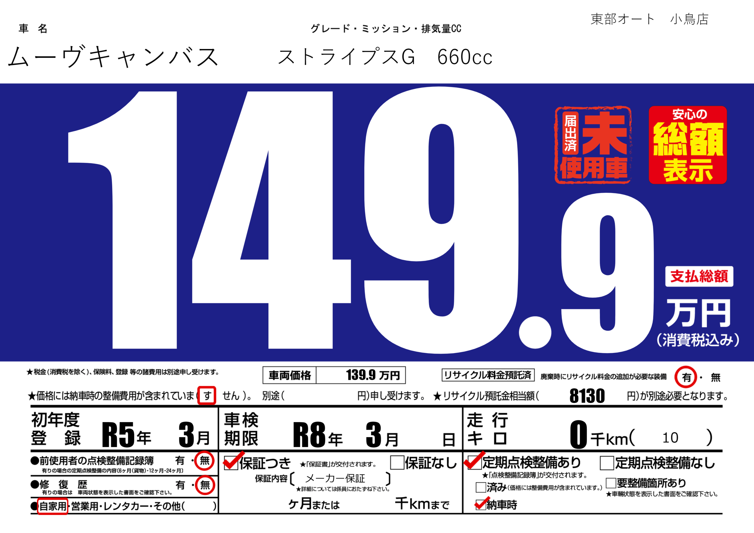 | 車検制限 | R8年 3月 - 日 | ||