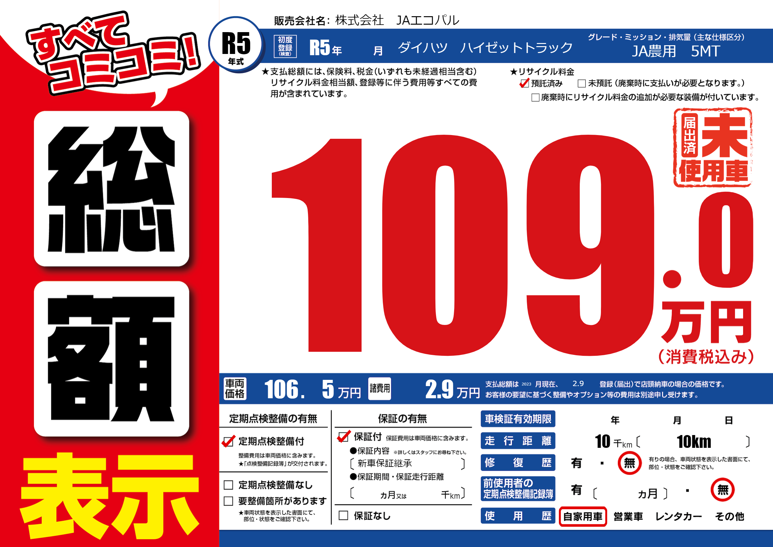 | 走行キロ | 1万km | 初年度登録 | R5年---月 |