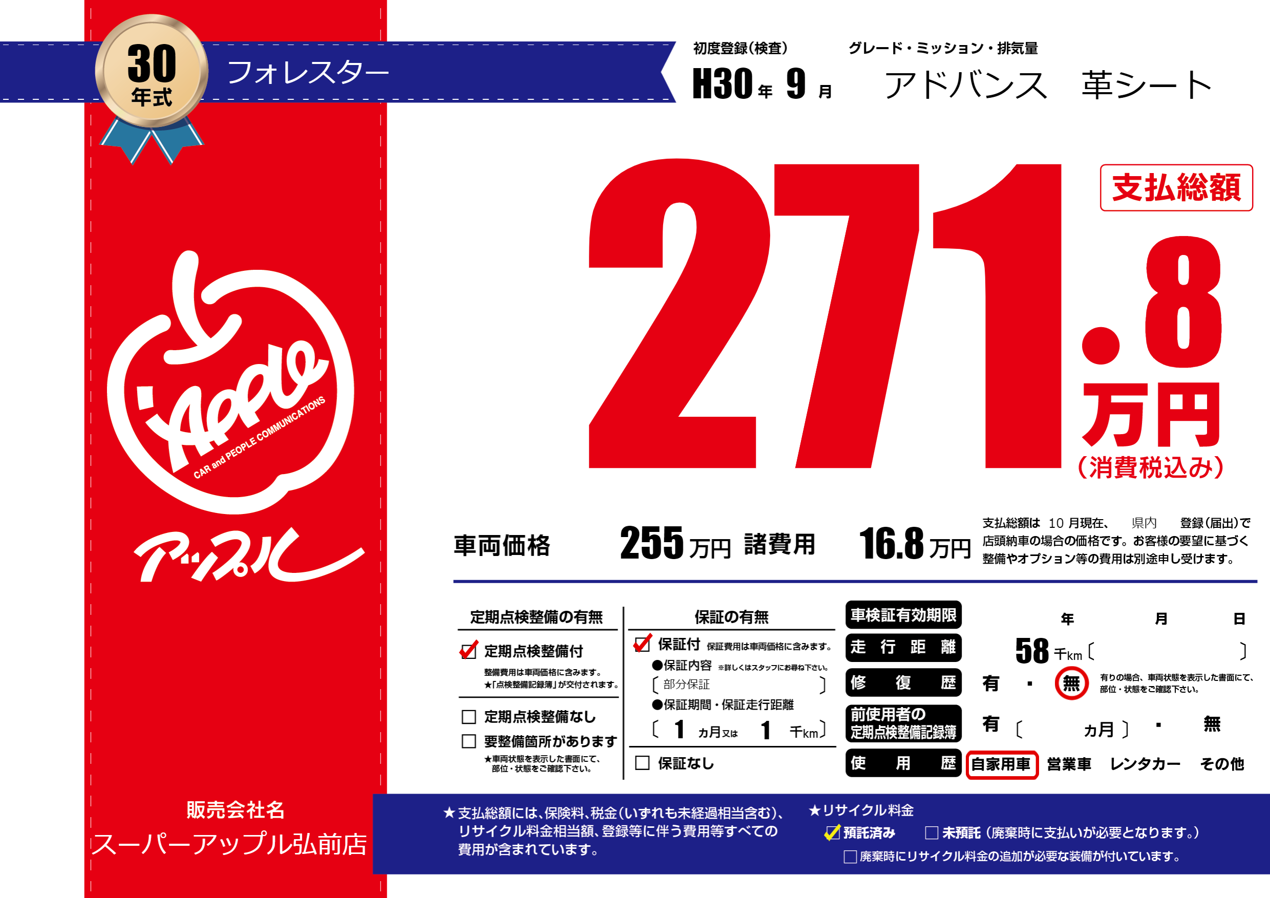 | 車名 | フォレスター | グレード ミッション 排気量 |