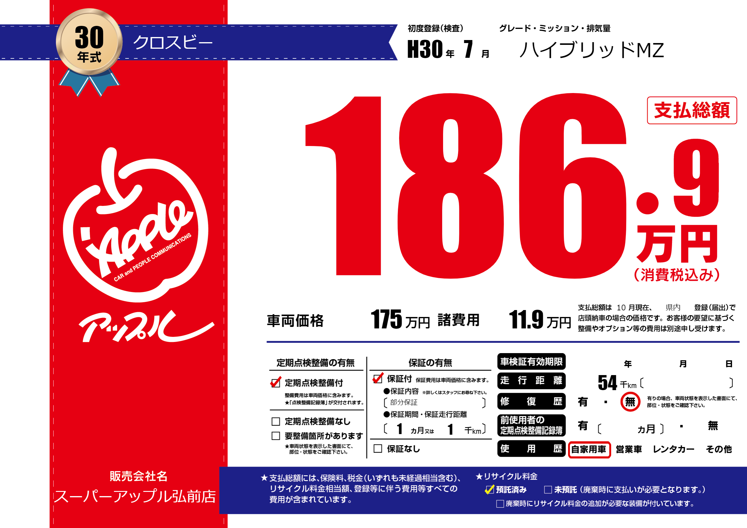 | 初年度登録 | H30年7月 | ||
