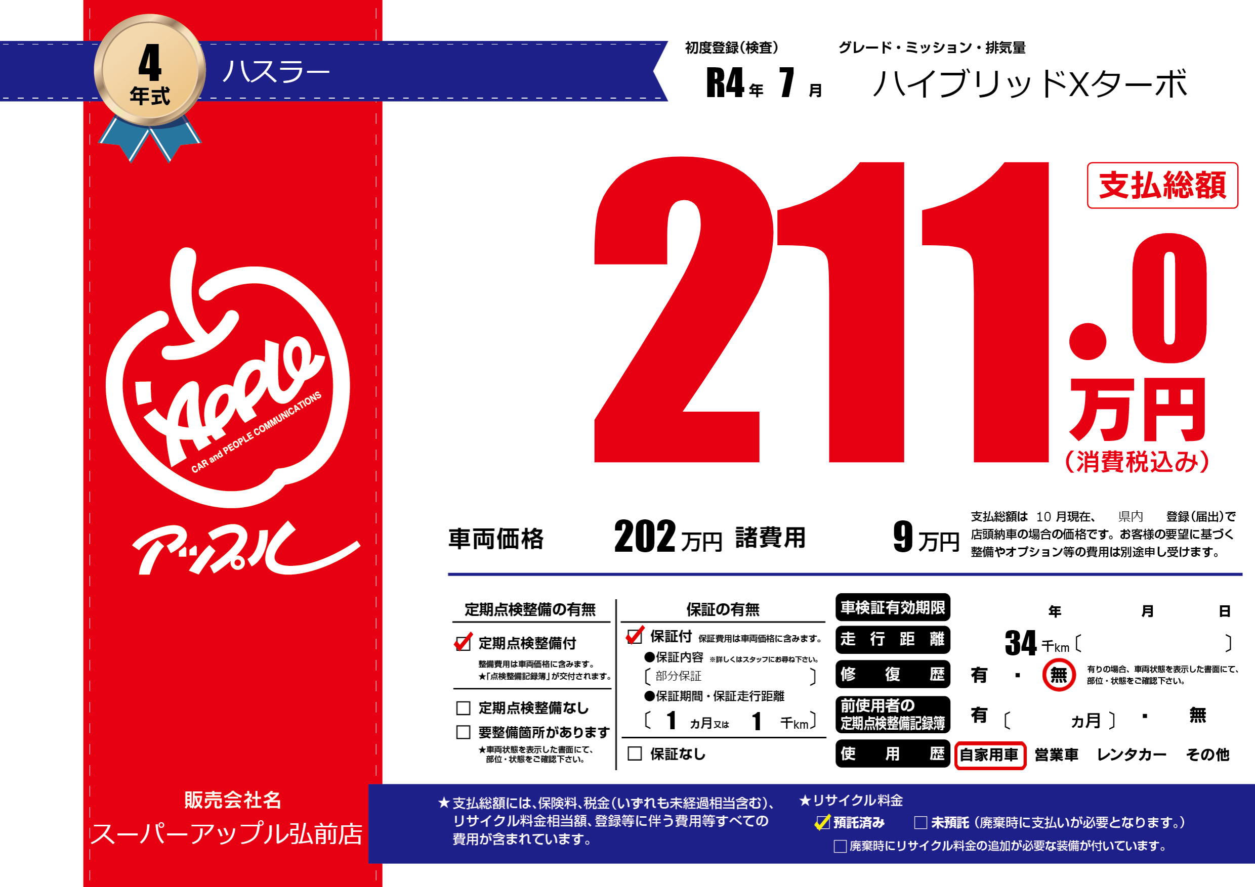 | 車名 | ハスラー | グレード ミッション 排気量 |