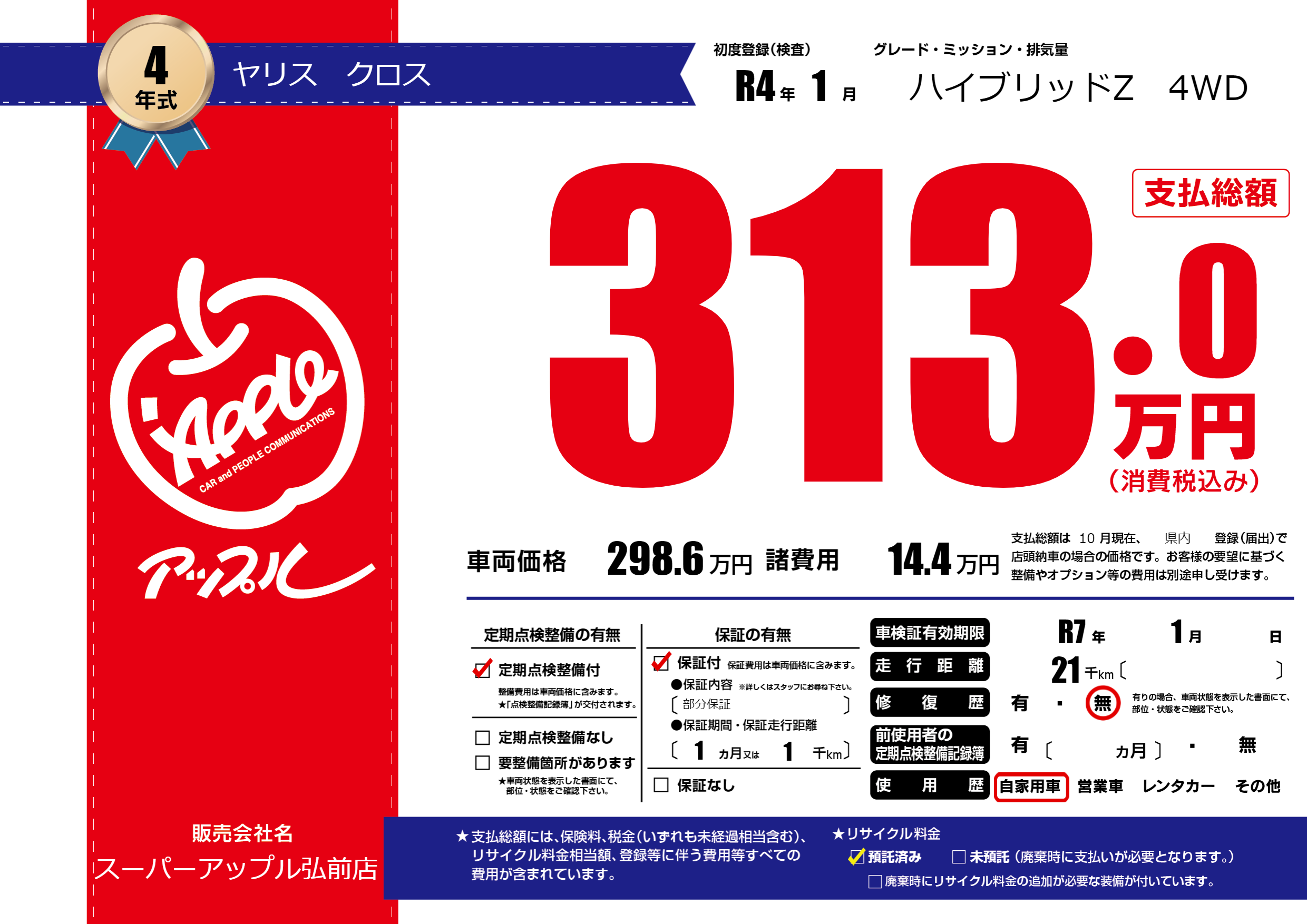 | 走行キロ | 2.1万km | 初年度登録 | R4年1月 |