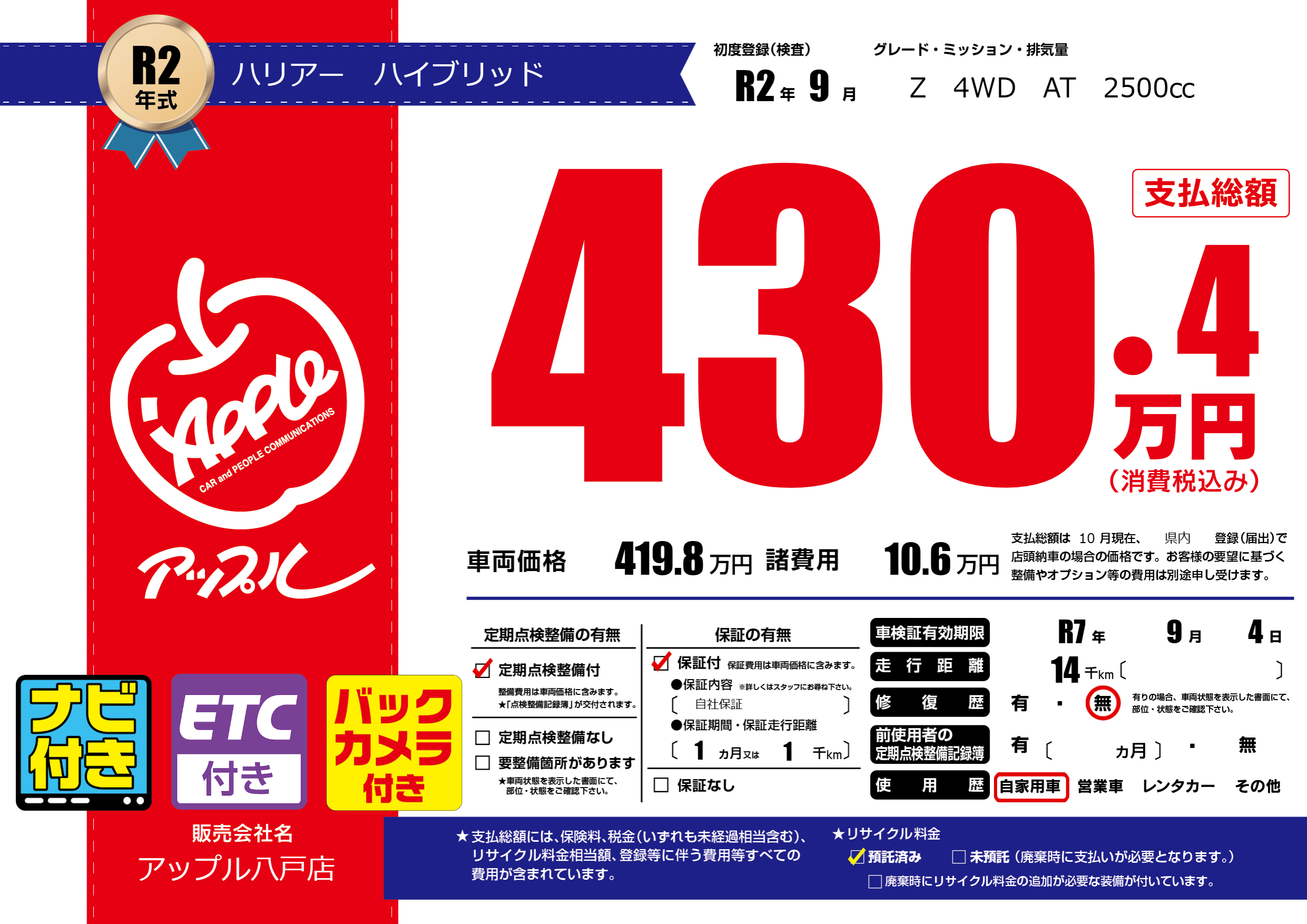 なし | 車検制限 | R7年9月4月 |