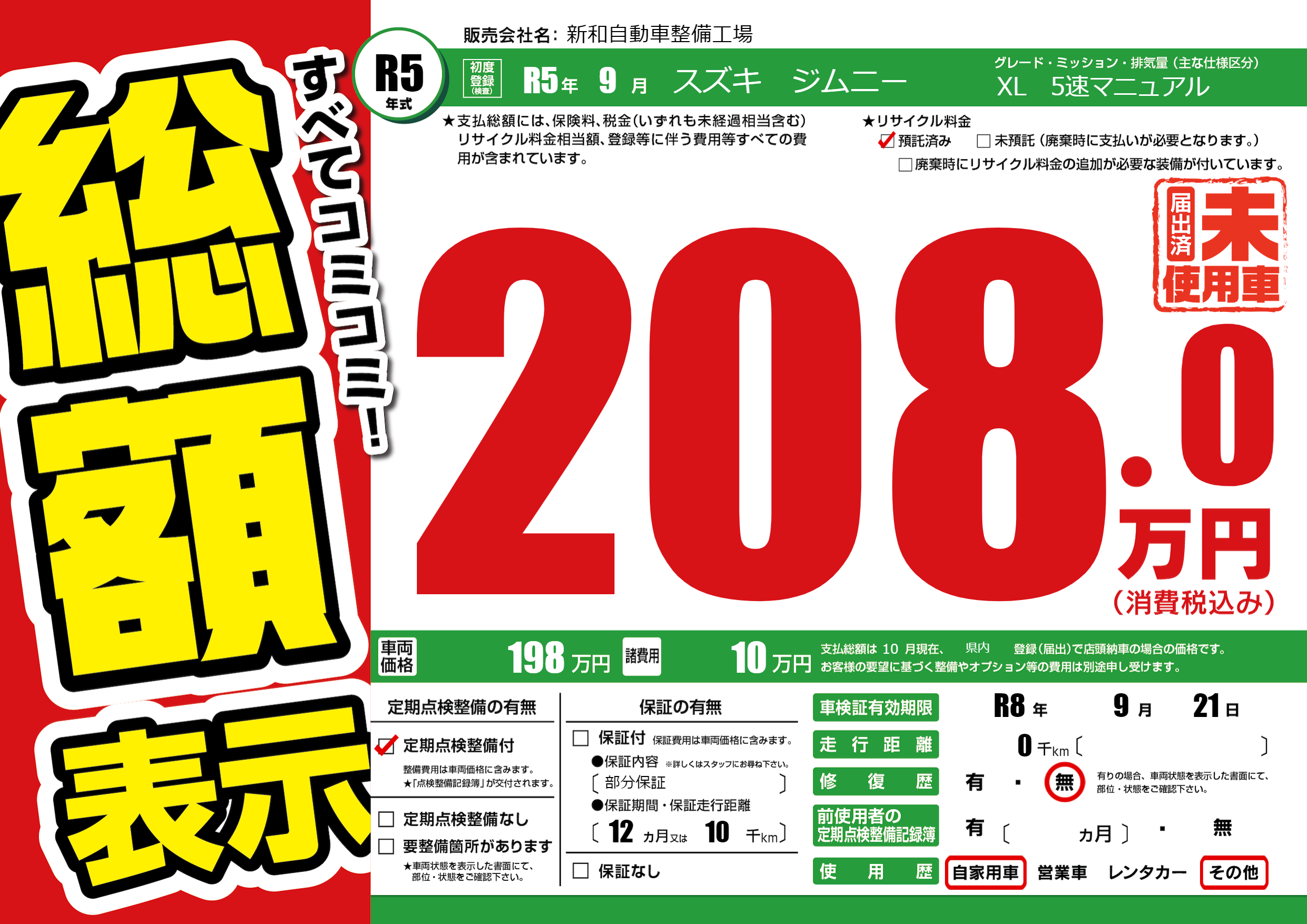 | 走行キロ | - | 初年度登録 | R5年9月 |